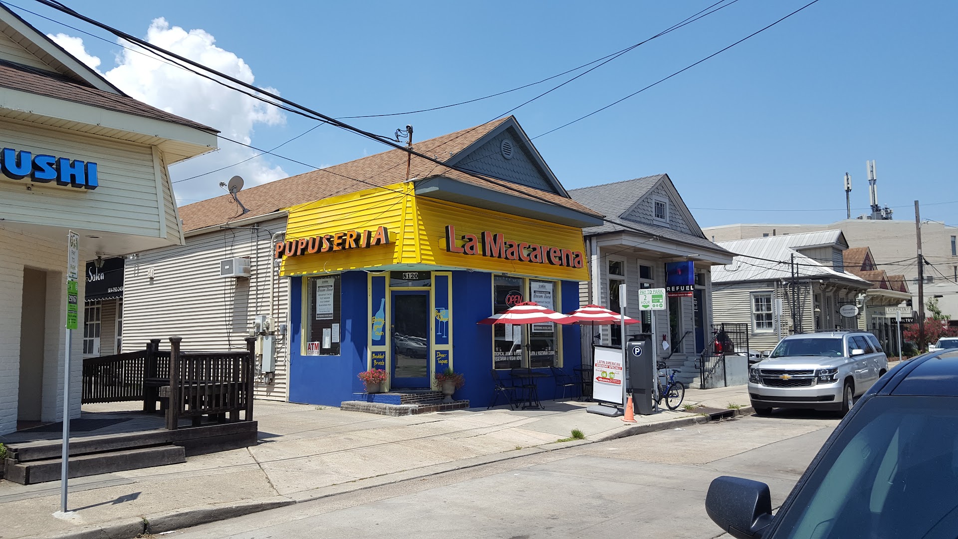 Near the intersection of Carrollton and St Charles, La Macarena is both conveniently located Uptown, but tucked away nicely. From the outside, the building is brightly colored, evoking the brilliance of Central America. This vibrant theme extends to the interior to create an immersive setting for an El Salvadoran meal.