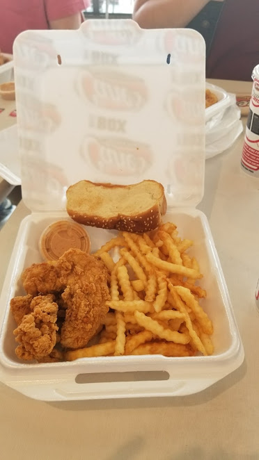 It didn’t take long for our food to be ready. I got the box combo which came with four chicken tenders, Texas toast, coleslaw, and a drink.