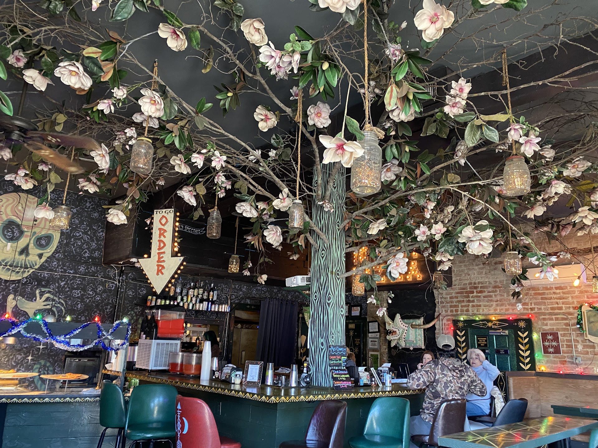 Ohhh where to start. The long wait time for a few drinks, the one bartender who was doing whatever while the female one tried to deal with a group of us on a ghost tour. The incorrect drink we got, which I will say the female bartender tried to rectify via another one on the house. Tragically the one we got was worse than the original. Had the flavor of thinned out KFC Masterpiece BBQ sauce and sour mix. Perhaps the debris in the drink was a dry rub that fell in said Magnolia beverage.