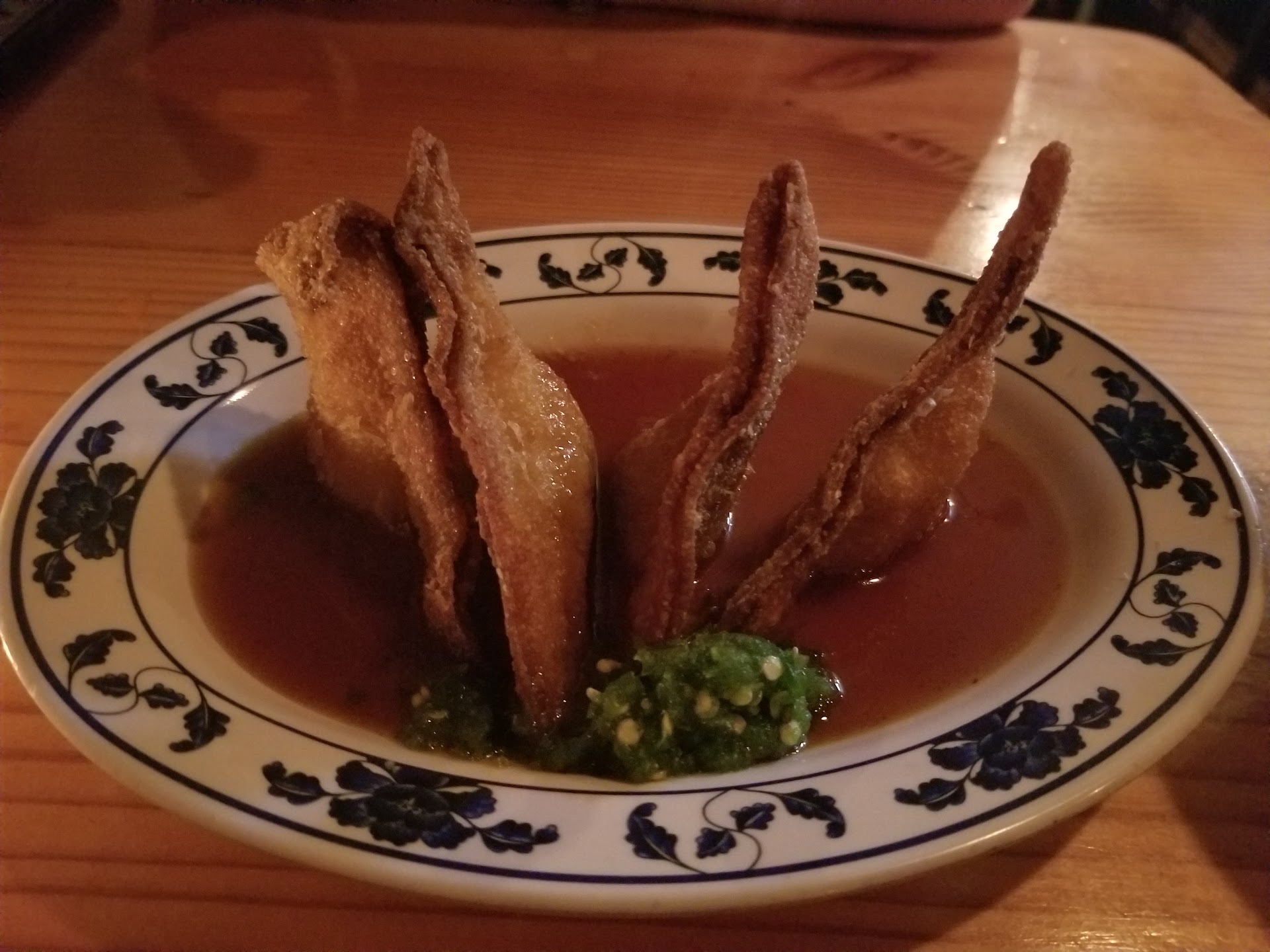 Thai iced tea daiquiri Crawgoons - local inspired version of the crab rangoon...crawfish and and a habanero honey sauce! Pork Belly Buns were awesome! The Kimchee is some of best, most flavorful and intense I've had General Chicken - local take on this popular dish using whole fried chicken drums, wings, breast, etc...gain, best I've had ever My wife had the ginger noodles ramen bowl and loved it! I finished w a Far East inspired Permanent Vacation cocktail...if I'd eaten any more I might have remained there, comatose, indeed on a more or less permanent vacation But wait...we weren't done yet. The donuts embellished w a green tree glaze had been fried to perfection. Delightful finish to our amazing meal!
