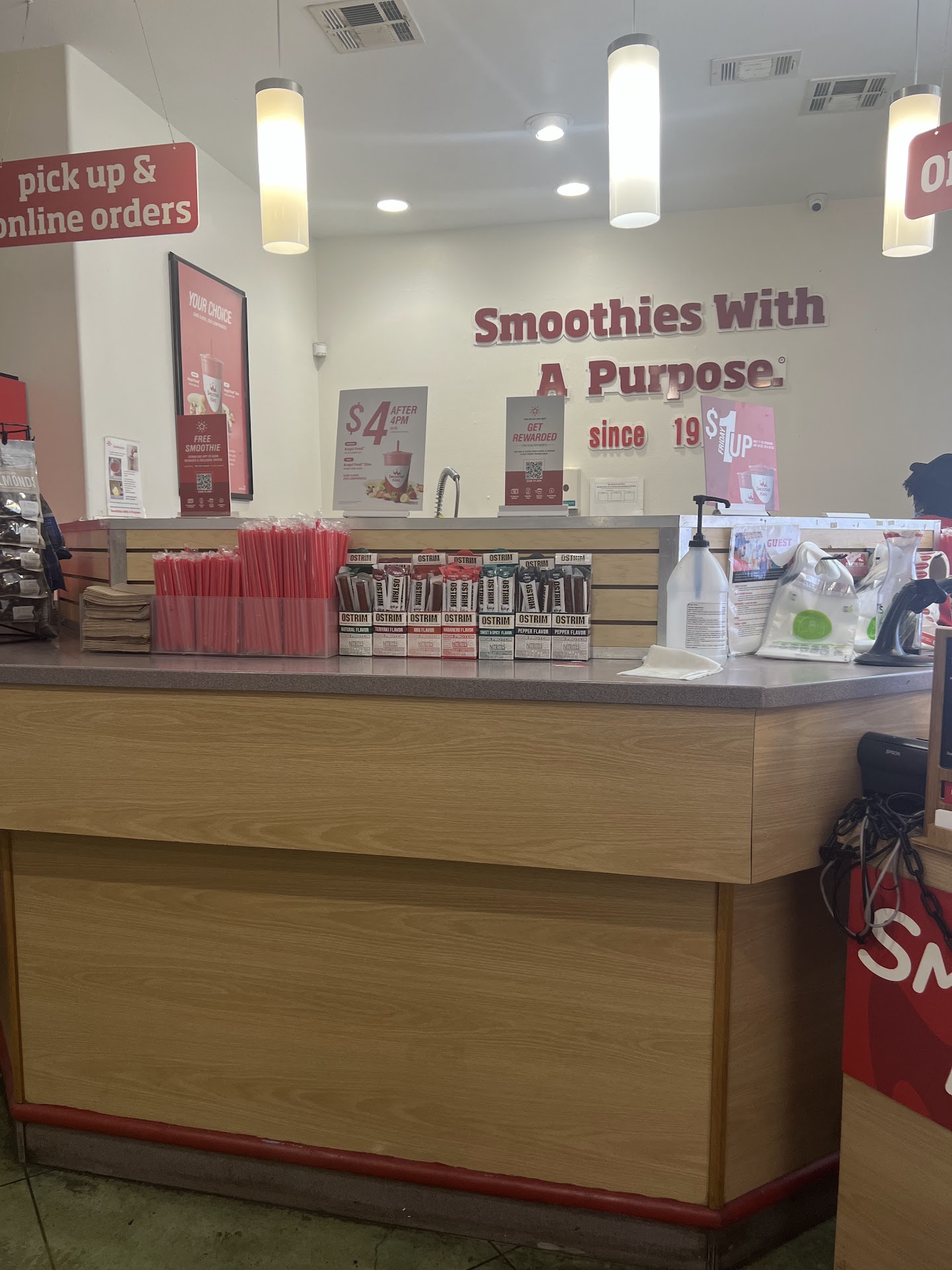 Read moreThe people here are so sweet. There used to be a lady who worked here who was always on her A1 game. But I just felt so disrespected last time I went. I had 4 drinks in my order. They have tons of blenders, but only used 1blender for my order. So 6 people behind me came and went. I didn't even have a whole person working on my order. He stopped and made someone else's order before getting back to mine. Then he forgot what I ordered. Isn't it printed out on the receipt that they use to prepare the drinks? How do you forget what I asked for? Then he used the wrong formula & tried to convince me I asked for the wrong thing. I had that smoothie a million times before. I checked with a photo on the website. Then I tasted it. It definitely was the wrong formula. But they are sweet folks. But this was so...