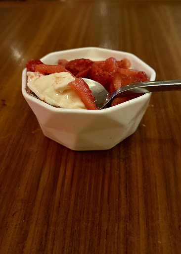 There is a good variety in the menu selections. I ordered a pizza and a pasta plate because I couldn’t decide which I wanted. The pizza came out and it was absolutely delicious! Perfect crisp, great flavoring, not too saucy and just overall A+. However, when the pasta dish came out, I seriously thought it was a kid’s plate. I kept wondering, where is the rest of it but, nope, that little bitty bowl (which is a child’s portion mind you), is what the entrée is. The pasta was delicious. Don’t get me wrong, it was good, maybe just a little too al dente but it was good. I’m just surprised at the kid’s size portions they served and they charge over $20 a dish for half the size of a normal entrée. That was disappointing. I ordered the pistachio cake… Well, what I thought would be a cake, was actually not. It was a pistachio bread muffin on top of I think yogurt with some strawberries. Not at all what I thought it would be. So I figured, I’ll try it, I mean, how bad could it be? Yeah, I took one bite and that was a no from me. I would recommend not listing it as a “cake” when it actually isn’t a cake. It’s a muffin on top of yogurt.