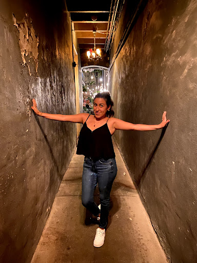 Sylvainâs bar area looks out on Chartres, but the entrance is down a candlelit alleyway. It gave the vibe of 1800s era New Orleans. The host stand is at the end of the semi-covered alleyway. You wither make a left into the dark wooded bar area, or can take a seat and wait for a table. The restaurant has two areas: a back area up a step or two and is surrounded by greenery and bathed in led string lights, and the walkway to that area has a few tables. We were seated in the walkway.