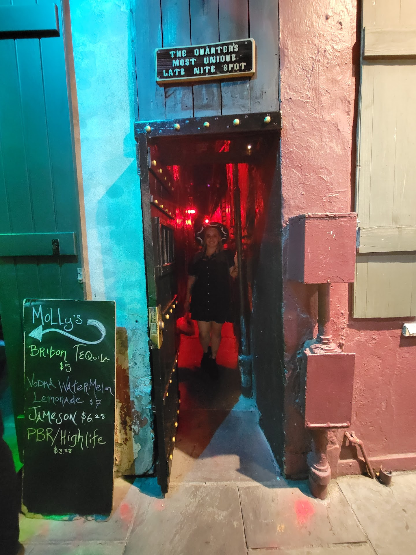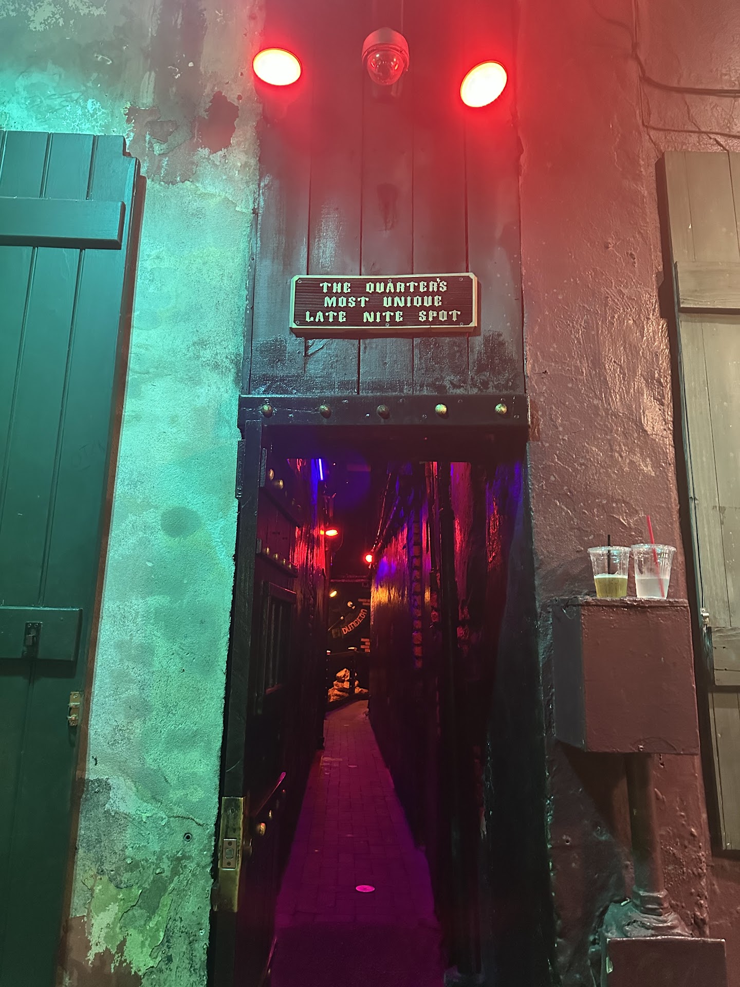The reason we kept coming back was the door man, Kyle. He was kind and helpful and recommended another bar to go to where we could wait till the dungeon opened. He offered me a phone charger when my phone was dying. And returned my medication to me that I lost on the outside patio. Honestly he saved our entire trip by finding it. Anyone else finding it wouldn’t have returned it and Kyle did. If i was a Nola local that would 100% be the spot we would frequent. We were there almost every day of our trip He had us coming back for the live performance on Wednesday and excited to be there.