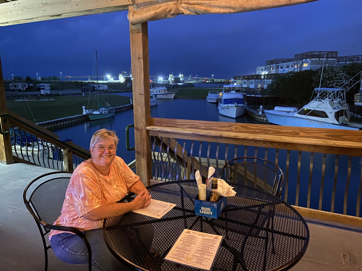 Read moreWaterfront Dining This is located at the New Orleans RV Resort and Marina, on a canal off of Lake Pontchartrain. Easy to get to by both car and boat with parking for both. The dining room and outdoor deck are on the second floor, accessed by a long winding ramp for handicapped folks. The dining room is comfortable, but we preferred to sit outside on the covered deck overlooking the small harbor and boats. We had a server that was just as friendly as you could get. Sitting near the water called for a tropical cocktail so I tried the Pontchartrain Punch per our servers recommendation for being less sweet as compared to a Hurricane. The drink menu has plenty of drinks to wet the whistle. My wife had her usual soda and lemon. My cocktail was quite tasty and electric pink/orange. For an appetizer we had the Swamp Balls ($7.95). Three alligator and 2 boudin balls that were made with rice, seasonings and the proteins, coated and deep fried, served with a spicy ranch sauce. Both were tasty. We split an order of Crab Cakes and Hush Puppies ($16.95) for our meal. The dish had two nice sized all crabmeat cakes and several hush puppies. Both piping hot and tasty. While the menu is not super huge, it has all the right things on it. As it was a little drizzly out, we had another drink and enjoyed sitting near the water. We...