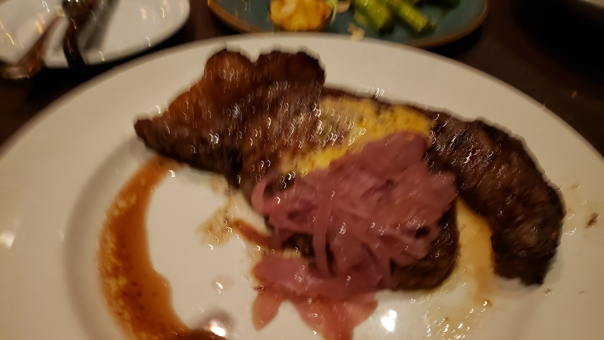 Read moreOkay I read other post about this place before I went and Im sorry to say that this spot is overrated. I made reservations so that is a must because its in a Casino. We ordered the ribeye and the porkchop. Together that's a 100 bucks before you add sides...look at the picture of my 16 ounce medium ribeye and tell me if u would pay 60 bucks for a steak that looks like this and trust me it tasted exactly like it looked.... Overcooked and bland...My wife had the pork chop and let me tell you hers did NOT even come close to Perry's Pork Chop. It was decent and looked better than the steak but it was tough after the first 2 bites but it was good enough to get 2 stars..Lastly the service was absolutely horrible...our waitress dropped off water and food and never returned until it was time to pay. We didn't even get drinks because she never returned. If you consider this a good steakhouse then Im glad u had a good experience but for me a good steakhouse is good "consistently" with food and service not just when the good crew/cooks are there. Been to Ruth Chris/ Perrys/ Mortons and MANY more but I've honestly had a better steak "consistently" at Longhorn Steakhouse in Texas than I did...