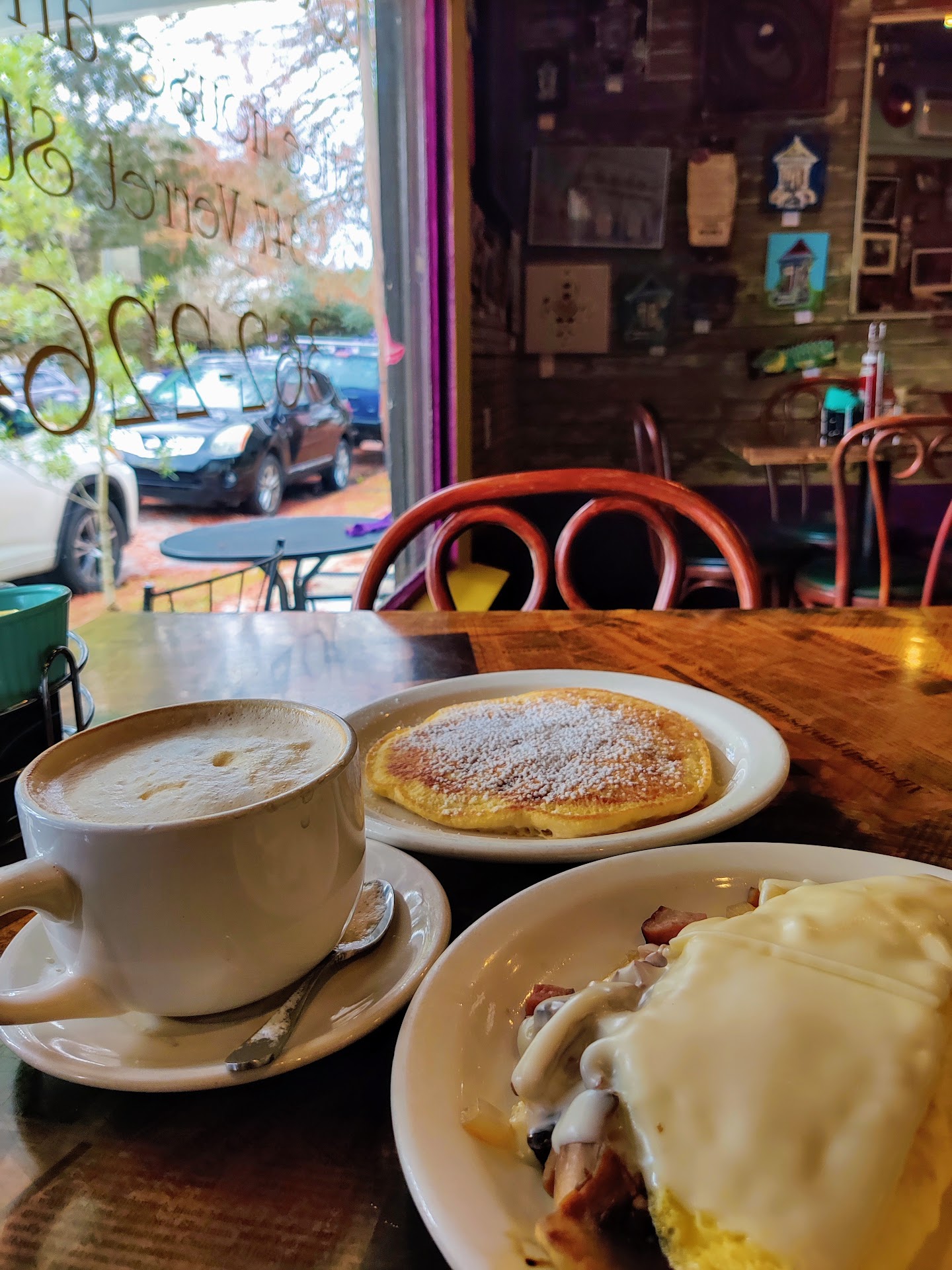 Read moreThis review was long overdue. This was a great find for us. We were in New Orleans for a couple of days. Algiers point is a must see when you are in New Orleans, with its beautiful french style houses and quiet neighborhood. It's just so beautiful by the Mississippi river. And this breakfast cafe is the best there is to get some amazing breakfast. It's a really popular cafe, both with locals and tourists. It was almost occupied when we got there. We had bar stools by the window. They make some fresh beans espresso and other coffees. The fresh smell of coffee filled the cafe. We ordered some coffee, pancakes and the Poche, which was eggs and andouille sausage with sauce on grits and boy it was delicious. The andouille sausage was so good, I still have that taste on my mind. The grits was amazing, too. I had never been a fan of grits but they made me love that grits. The whole combination was so sumptuous. It was great. The pancakes were amazing, too. They were fluffy and tasted amazing. I enjoyed the breakfast so much I left my car keys behind and by the time I remembered my keys were missing, I was on the other side of the river and the place was already closed. Good thing about New Orleans is the public transportation is really good. I had parked my car at the hotel. I went back next morning and the owner had safely kept my keys. It was hot when I got there. She offered me chilled water. She was real nice. This place is a must go when you are in Algiers point. Can't recommend this...