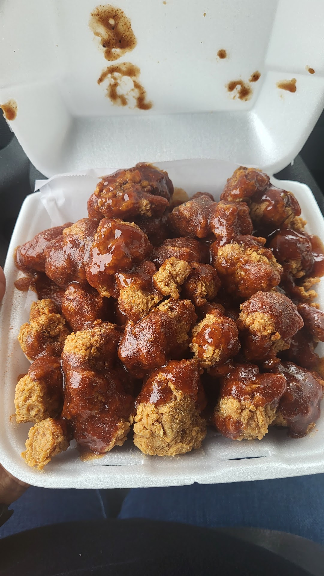 Read moreSo I am beyond mad right now for so many reasons but I will only name a few!!!! 1. Why has NONE of my vegan and vegetarian friends told me about this spot, I had to find it on Google. 2. I really need this place to be on the map of best vegan/vegetarian spots out there but here we are. 3. Who told him ("E") to make this food so good. 4. It was really hard for me to tell if I was actually eating vegan because the food taste so much like the actually meat but it's NOT! I had placed this spot in my list of places to visit and finally made it. I was not disappointed. The food was hot, fresh, flavorful and OMG so good. It's best to call in your order or order through the app because I waited 45 min but it was so worth it. You will have to get it togo only because it's not Dine in. I sat in my car and the atmosphere was a little weird with the people passing by but they didn't bother me and I didn't bother them. I really wish they would add a sign because I had passed this place so many times and had no clue they were located here. I had the 2nd line burger (walnuts) and it was topped with a sauce that had me licking fingers and plate. The grilled bellpeppers and onions gives it that extra blast of goodness in the mouth. I decided to order a "small" bbq cauliwing plate and should have ordered the side because there was ABSOLUTELY NOTHING small about the small. There was enough food for at least 3 days alone or 4 people in one sitting, see photos if you don't believe me. He even had to use a rubber band to keep it closed. All I can say is absolutely amazing. My only suggestion would be, cut back on the onion powder or whatever seasoning is on the wings. I want say it wasn't salty but there is a seasoning that was a bit overpowering at times and it taste more like a onion or garlic powder. Other that that, well done. It's a definite must try.!!!!! I will...