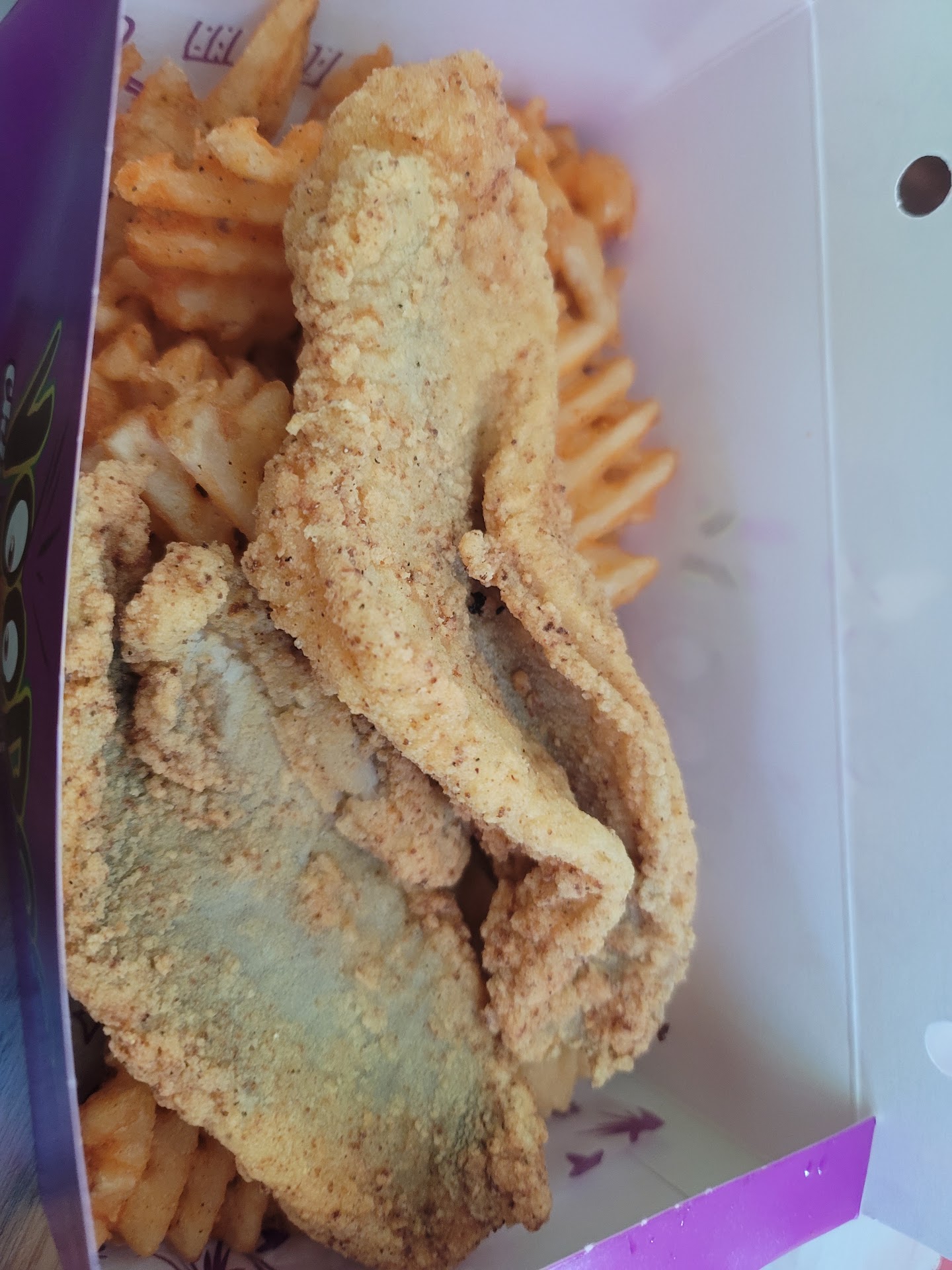 Read moreMy 1st visit to New Orleans, and this was the very first restaurant I ate at. I ultimately went here because popeye's employees were extremely rude to the customers ahead of me and I didn't want to deal with that negative energy. I walked a few doors down and this was the next restaurant to see on Canal Street. The brother who took my order was cool and down to earth (😎) as in everyday people ✌🏾. I ordered a two piece fried chicken combo, and a 2 piece fish combo. The fried chicken was breaded good, and wasn't dry at all. It had a very good cook on it and not overcooked. The only issue for me was it was entirely too spicy. So if you like a hearty spicy kick to your chicken, then I recommend them. The waffle fries were not very good at all, but they came with the combo. The waffle fries were cooked good which made them look appealing to the eye, however while eating them some were very hard and had almost a freezer burnt taste 🤷🏾♂️. Now let's talk about this fish..... The fish looks very good to the eye 👁, nice and brown with a good batter. However, that seasoning was overly salty 🧂 😳 😒. Hey it could have just been the batter for that moment, but if it wasn't overly salty I would have loved eating that fish. Some folks love a heavy salty seasoning and if you do, then you'll enjoy the fish. The music vibe is pretty good. It's good commercial music, the windows are open and you can watch as the folks pass by in the street. This is all jmo, you might go & experience...