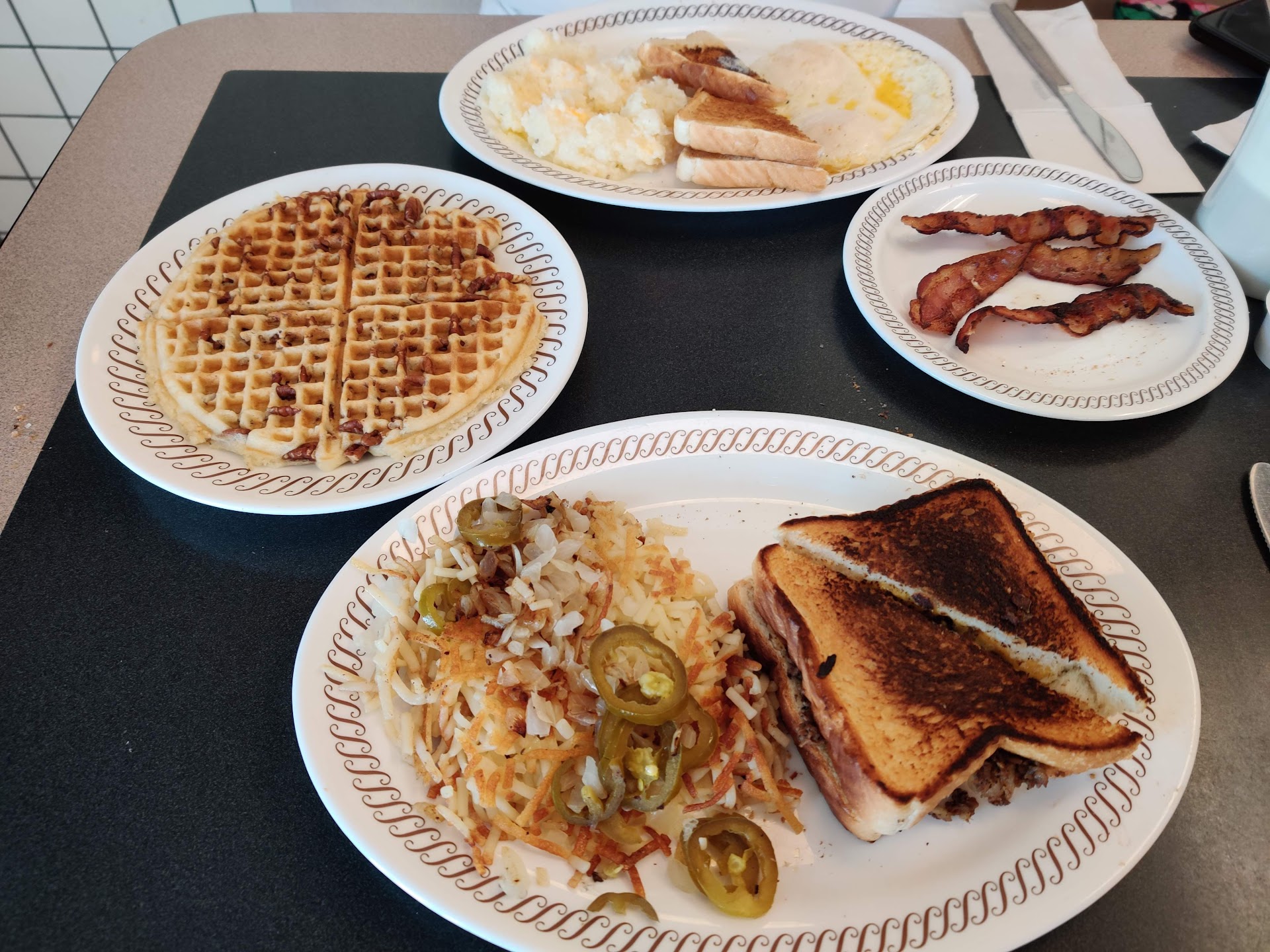 Read moreI went in this Waffle House this morning expecting great service, however I unfortunately wasn't given that. I walked in, there were gentlemen sitting and eating and four staff workers. I stood there for 3 mins until someone acknowledged me to say "we will be with you in a minute". That minute turned into two. I was mind boggled, because there was this young African American lady cleaning, who didn't bother to look up once. (I figured she was into her cleaning, so that she may go home). After finally getting to have a conversation with the Caucasian cashier, I requested a menu. She informed me that the menu was a barcode scan through the phone. (I figured it was due to COVID and understood). I replied to the lady by stating that I didn't bring my phone with me, so I couldn't view the menu. Then asked if she could quote me the price of hash browns, eggs and grits with possible sausage. She did. After getting the information needed, I ordered and waited. The cooks were fast and efficient, and incredibly worked in sync. When my order was finished, the cashier stated that they were out of utensils and asked if I could find my own. I was confused, because usually that something stated before ordering food in a restaurant, no matter the ratings. I was already pressed for time, so I told her I would figure it out. I asked her if I could have ketchup, grape jam and syrup, she declined the syrup. She then stated that the company is only allowing syrup with an order of waffles ONLY. I asked her if I could pay for it, she said no. I asked if I could see about getting it for the inconvenience of the utensils, she stated that her manager is the only person who is able to approve of that and that they weren't there at that time. I finally said ok and left the situation alone. As I got to work, I noticed that I still did NOT have any ketchup in the bag. Which was a pain because I'm pregnant and have to have ketchup with my hash browns. I honestly think that customer service needs an update in this exact restaurant from my personal experience. I too work in customer service and deal with people from around the world. So to have such poor service given, shows that not everyone is fit for this business. Management please consider retraining your staff, and maybe consider hiring a supervisor to maintain customer relations when you are not around. I will never go back to this restaurant. Thank you ladies for making such a small request of customer service...
