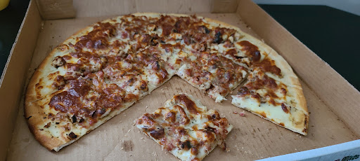Got home and tasted it. VERY chewy (pre-made) crust. Hard to chew. I mean- my jaws were getting sore so I just ate the toppings after a few pieces. The breadsticks were hot, but dry- even with the cold cheddar cheese.