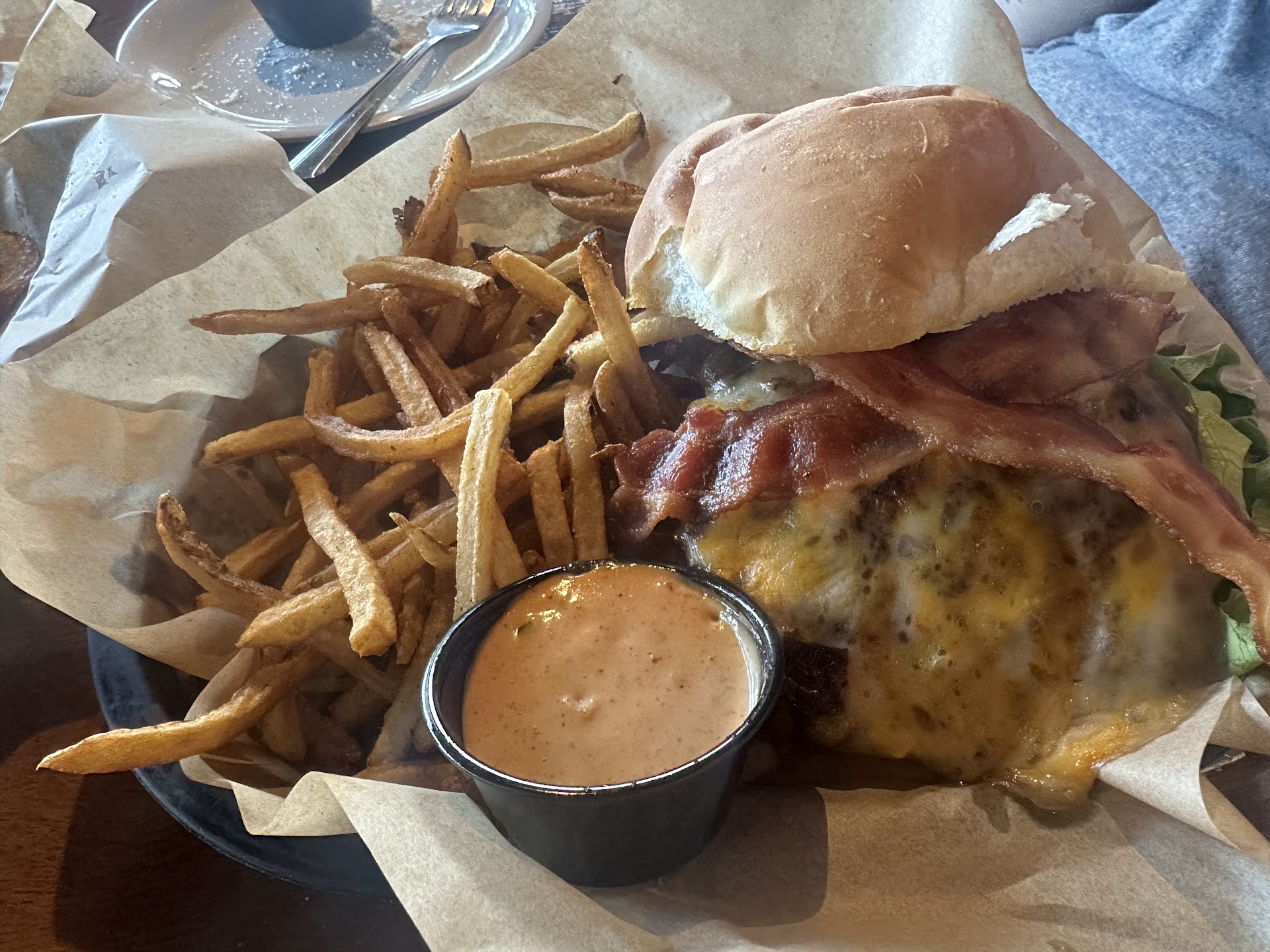 They make chips in house and they are life changing. Loaded with bacon and cheese served with ranch or served plain with onion dip. I have never had a restaurant made potato chip that was thin like a Lays chip. Worth the trip just for the chips!!!😍