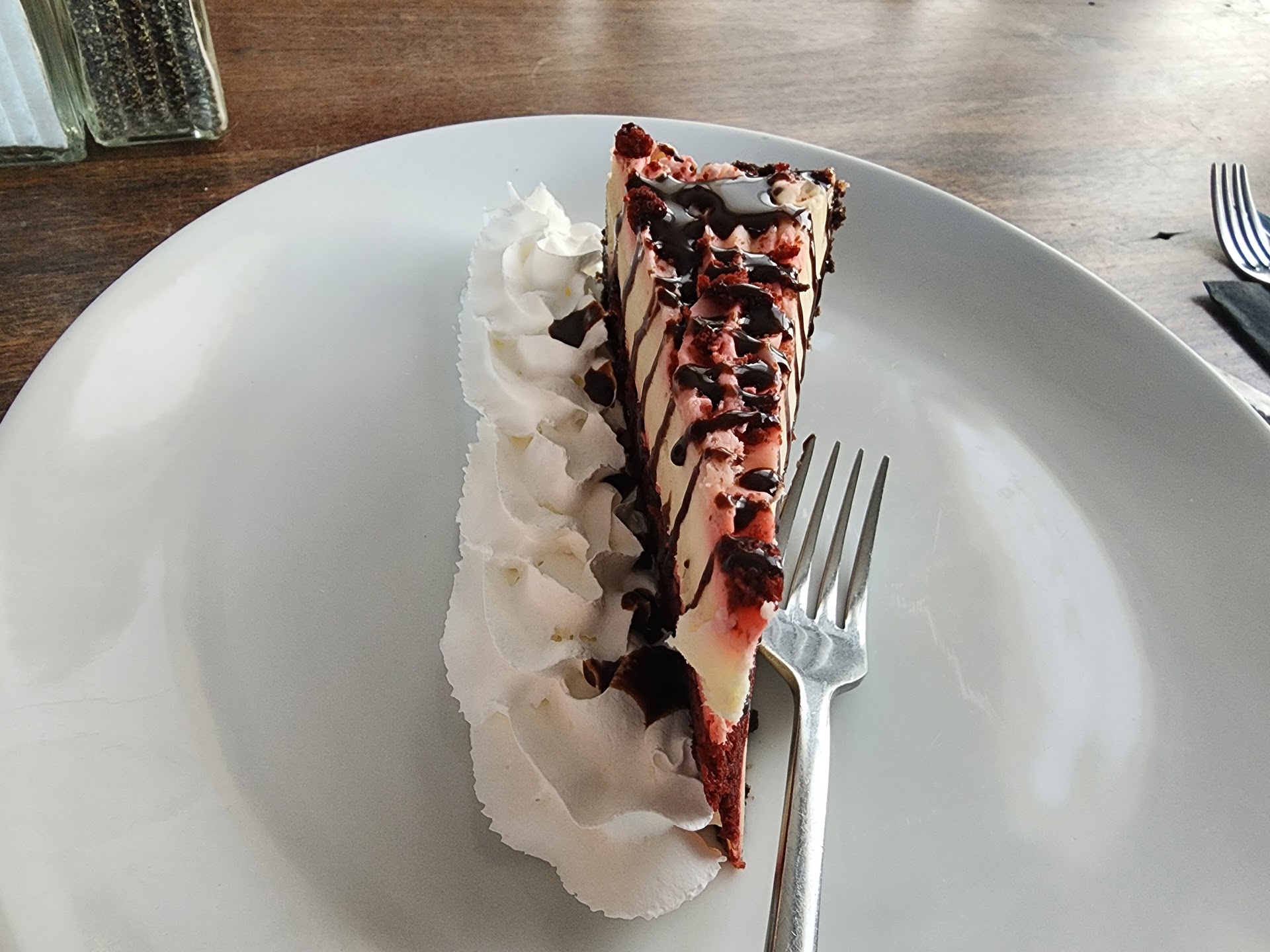 It was our anniversary so we got dessert. We had creme Brule, which was also good. My husband got the carrot cake to go. It was huge! It was also good.