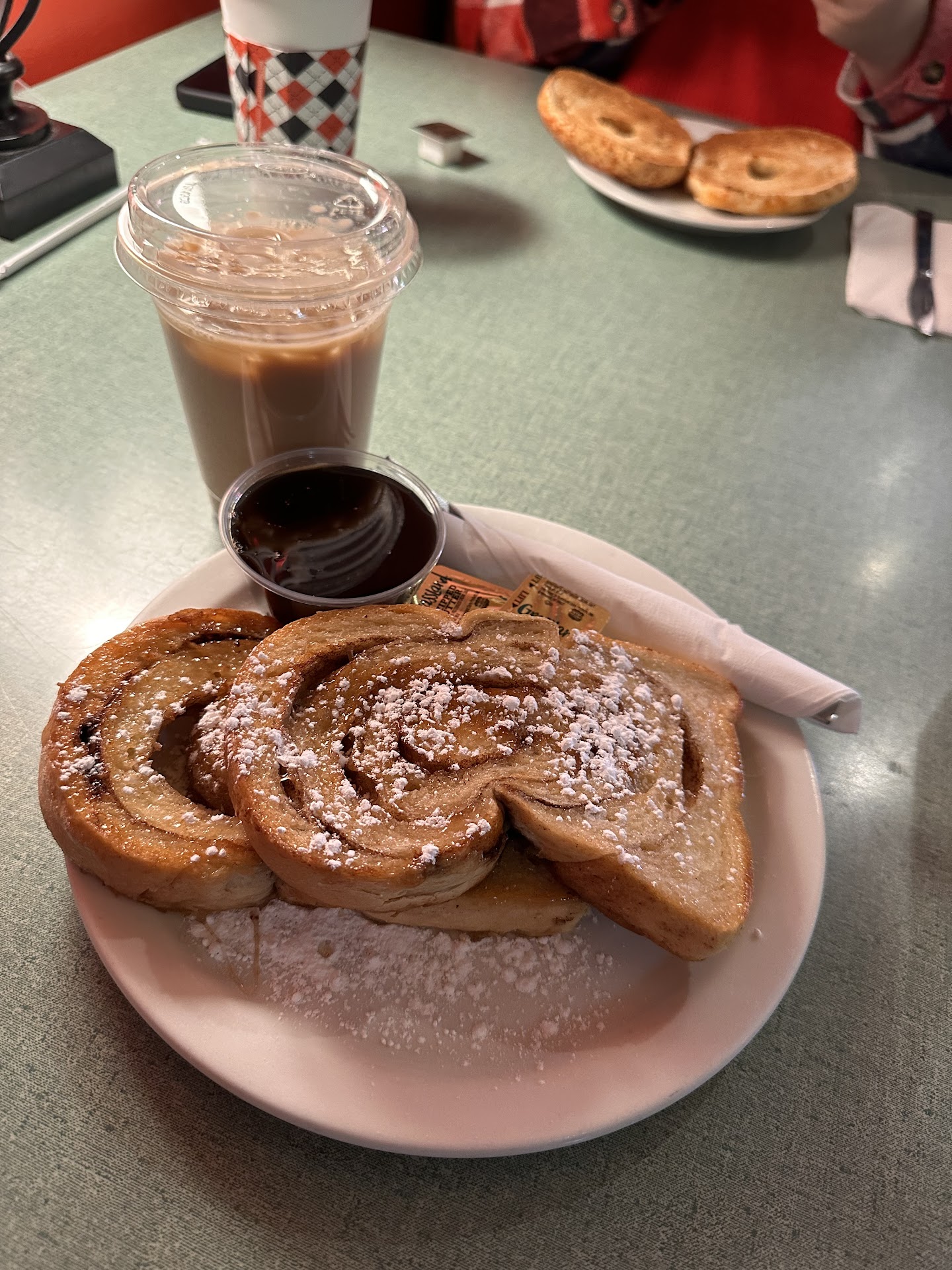 Read moreI’m here on vacation with my girlfriend. We always try the local coffee shops. It’s our thing. Anyways, we stopped in this morning for coffee and some breakfast. My girlfriend got the Asiago bagel, was raving about it the whole time. I got the French toast as it had great reviews online. It was quite sweet, if I got it again I might not put the syrup on it. That’s just my preference. It was still excellent! Just very sweet on its own and I found adding the syrup made it a little too sweet for my taste. Still great though. The coffee was excellent! I got the blueberry pancake latte. I chose to get it iced. It was so good!!!!! Definitely will be getting it again in a larger size! My girlfriend got the s’mores latte (hot) and finished it before we even left! However, all of this is just the icing on the cake. The cherry on top was how accommodating they were! All the girls working today were so warm and welcoming! I’m accompanied by my cardiac alert service dog. One of his favorite things to get on occasion is a pup cup ( a cup of whipped cream). He always sits and patiently waits, as he’s supposed to, for me to ask the staff if I can order him one. Not only did they allow him to have two, but they even brought him out a bowl of water. Yes a bowl! Not a cup. Can’t even put into words how much this impressed me and I know it meant the world to him. My service dog is my lifeline and he’s worked very hard to get where he is in his training and his career. I love being able to repay him with a treat from time to time and this one I know made the books for him and I both! We will definitely be visiting again in the future!!! DISCLAIMER, THIS IS NOT A PET FRIENDLY BUSINESS. THEY ONLY ALLOW TRAINED...