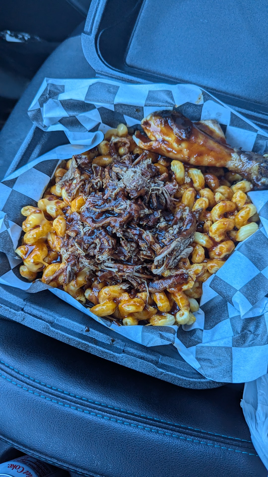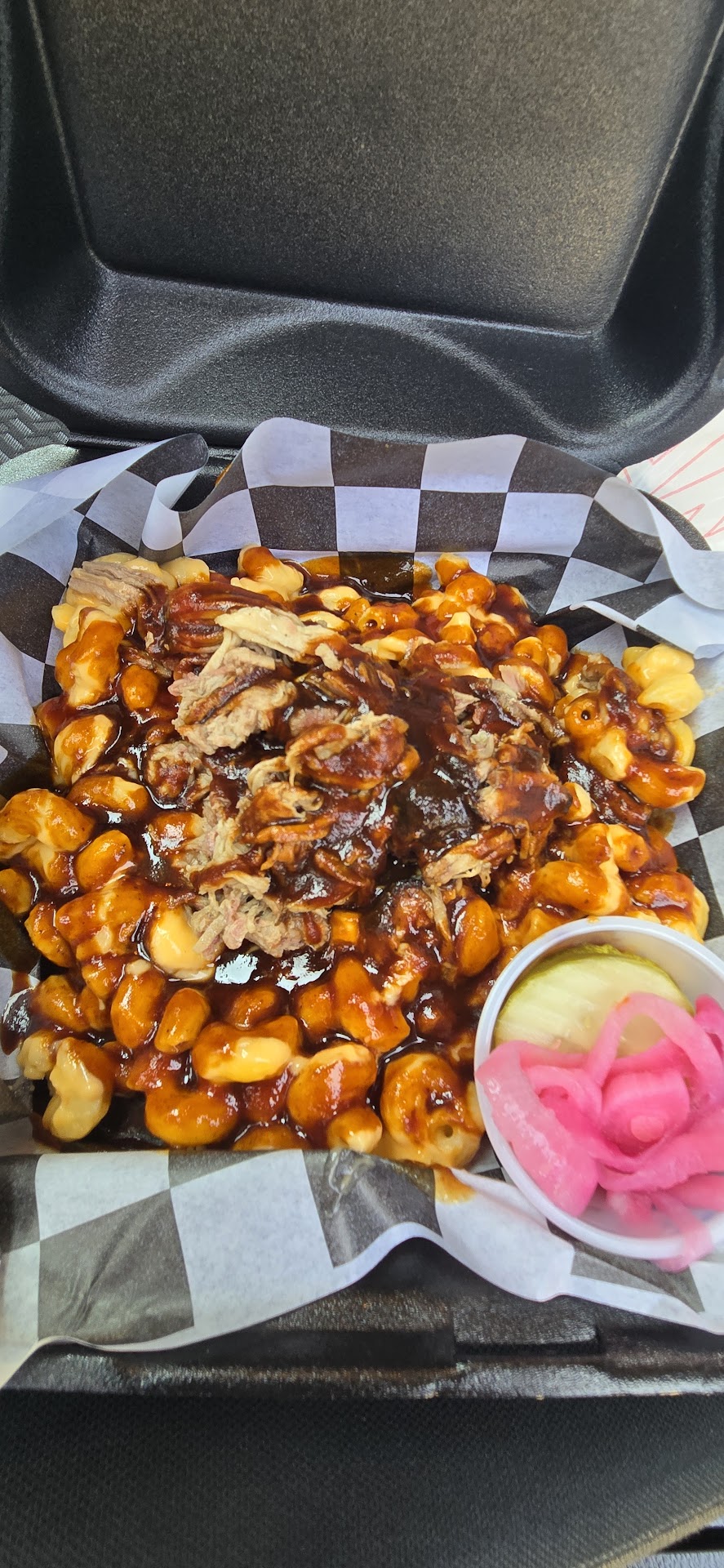 I just happened on this place when I was looking for some place to eat as I passed through New Philadelphia. I googled barbecue knowing there was a place in town but found this new place so I stopped. Turned out to be a food truck and it was a rather hot day. There really wasn't any place to sit and eat in the shade. Had a nice conversation with the owner who came from Kansas city. I just wanted to try a couple of things so I got pulled pork and sausage with a Mac side. While he was fixing that he insisted I try a couple of his ribs and he also threw in a side of baked beans. There was so much food two could have eaten and had some left. Everything was very good. Typical KC sauce with a little bite to it and thinner than the heavy sauce most are used to. I will go out of my way for good q and smoke a little myself and I would definitely stop again. Probably on a Friday or Saturday to try the brisket which is only...