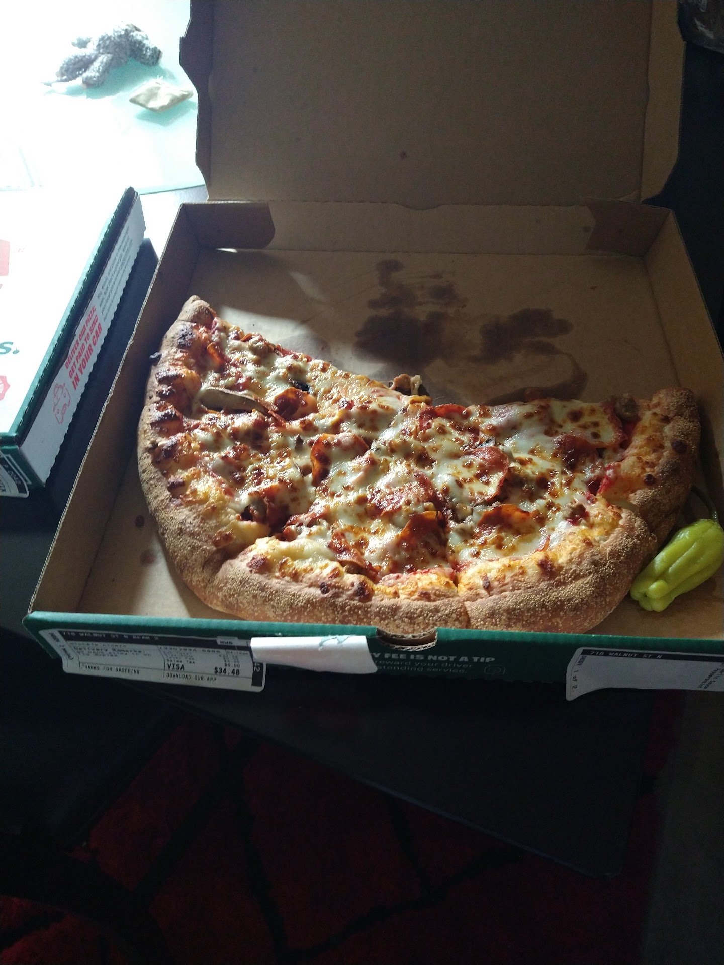 Read moreExcellent! Generous with the toppings. Was delivered fast, and the pizza and cheese sticks were still hot. This was the first time I've ordered from Papa John's, and I'm planning on making this my "go to" pizza 🍕