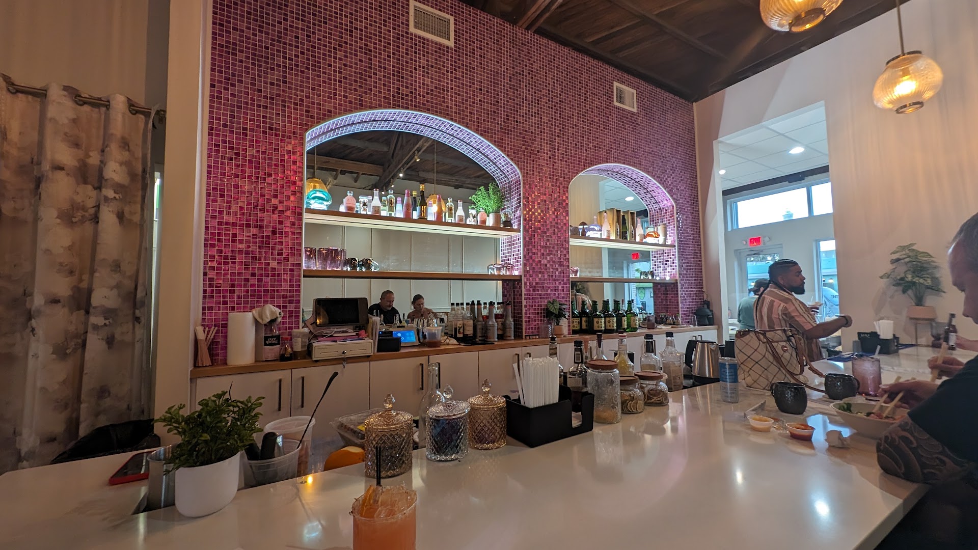 Read moreFirst, I want to start out by saying I really wanted to like this place. I expected to like this place. I love their menu at the Trinity location and the quality has always been top notch. This location left me stunned. We ordered a few drinks and when the bartender opened the fridge to grab the limpest cucumber I've ever seen to muddle into my drink, bar flies exploded out of the fridge. The bartender has made a comment under his breath and sniffed the cucumber, so I guess that passed quality control. My drink had a weird aftertaste of overripe cucumber. Anyways, to the food. I asked to dine in and started with the loaded fried pickles. Safe place to start, right? Well not only did my app come out 10 min after my entree, they were apparently done in an air fryer or small oven and was the tiniest portion of over salted, soggy pickles I had ever had. The real kicker was that everything came out in to go boxes and plastic silverware. If I'm dining in and paying $14 for a handful of fried pickles, at least give me a real plate and silverware, not a 4x5 inch take out box. The wonton chip poke was even more expensive and just as tiny of a portion. Their food prep area was a mess, filled with unwashed lettuce and dirty mixing bowls. The fish was very warm. I honestly shouldn't have eaten it but I was waiting so long I was starving at that point. All of the food was exposed to the elements with no covers and near the front doors, which were also open. I guess that explains the flies. Overall, the menu was severly lacking and the quality was not up to my standards for a place that serves fish. Unfortunate waste of $84. (Yes, I still tipped the bartender generously). What really got me was that both owners were there and complacent in the all of this. But that's a choice, I guess. My partner is a chef and was stunned at the way the food prep area was kept. He was wanting to leave but I felt like giving it a fighting chance. He wanted to add that you should never have unwashed, warm lettuce set out as a ready to order item. And for the love of god, clean your station. I felt it rude to take photos, but I'll leave it up to anyone visiting to just take a peek while their food...