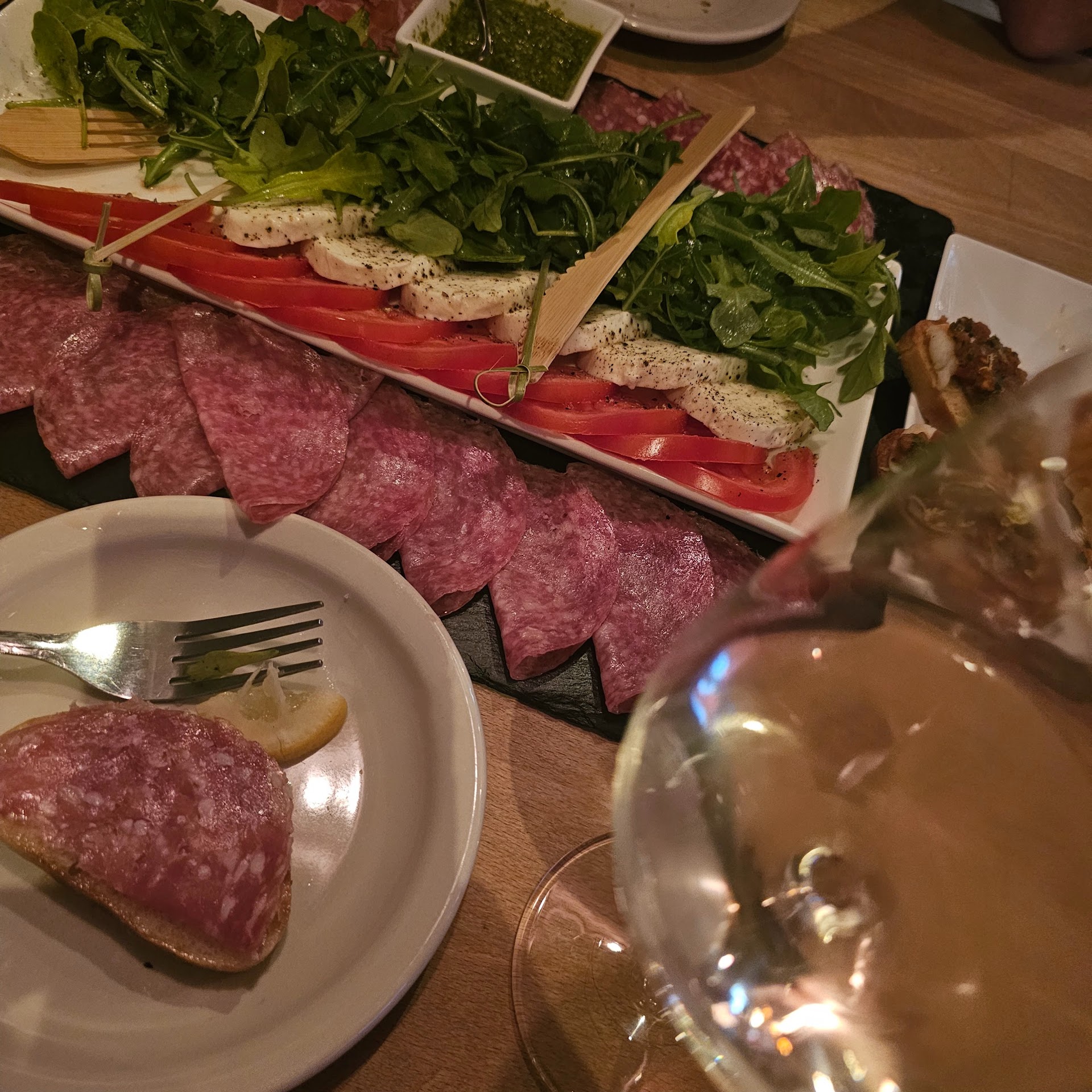 Stopped in as it is a neat looking place inside and they have wines by the glass which was definitely on the menu for the other half. We sat at the 2 bar stools near the bar area. Provided menus immediately. One menu for for food and one for beverages. They have plenty of non alcoholic choices too. Very decent selection of beer on tap. Even had an IPA/Pale I have never had before which is hard to do as they have been my fav for years. He had several tasters of red wines and he went with the Federalist first. He had another red which was the bartender/staff favorite. We also ordered the Sun dried tomato in a blue cheese and garlic spread with bread on the side. Wow. That was a perfect combination. So glad we had that. There is a speakeasy in the back. Peeked in there and it is cool. Can rent it out for private events which someone had last night and they all seemed to have a really great time! We will definitely return. We have no idea why someone in our area has not done something like this. Love it! Well done. Staff very friendly and welcoming. Clean. spacious. Following social distancing. Outside tables on the sidewalk available...