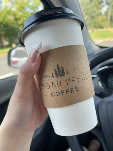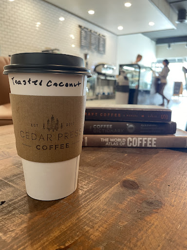 Read moreCedar Press quickly became my favorite coffee shop! I got a caramel iced latte and it was delicious. Service was quick and with a smile despite how busy it was. You can tell they were grateful and appreciated their customers. Also the atmosphere inside was amazing. Sleek and modern. A perfect place to catch up with friends, read or just sit back and people watch.
