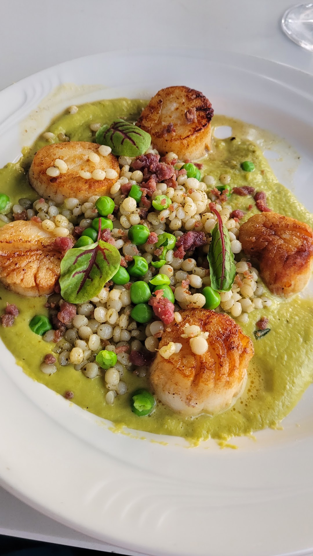 Read moreSurprised by how bad this was. The server seemed aloof to our requests and the information we gave. When I told him I wanted to avoid treenuts due to an allergy he would check with the kitchen but never followed up with me. When I asked if a red sauce was a romesco he said he didn’t know why it was and didn’t know if it had nuts in it. The olive oil served with the bread was rancid. The scallop entree was a disaster. The scallops were from a frozen source, there was a heavy amount of raw garlic in the dish making it a huge surprise to get a mouth full of raw garlic disguised in the rice. Blows out the palette. I asked to order a cheese plate since the previous dish was inedible and asked for there to be no nuts on the plate. It arrived with...