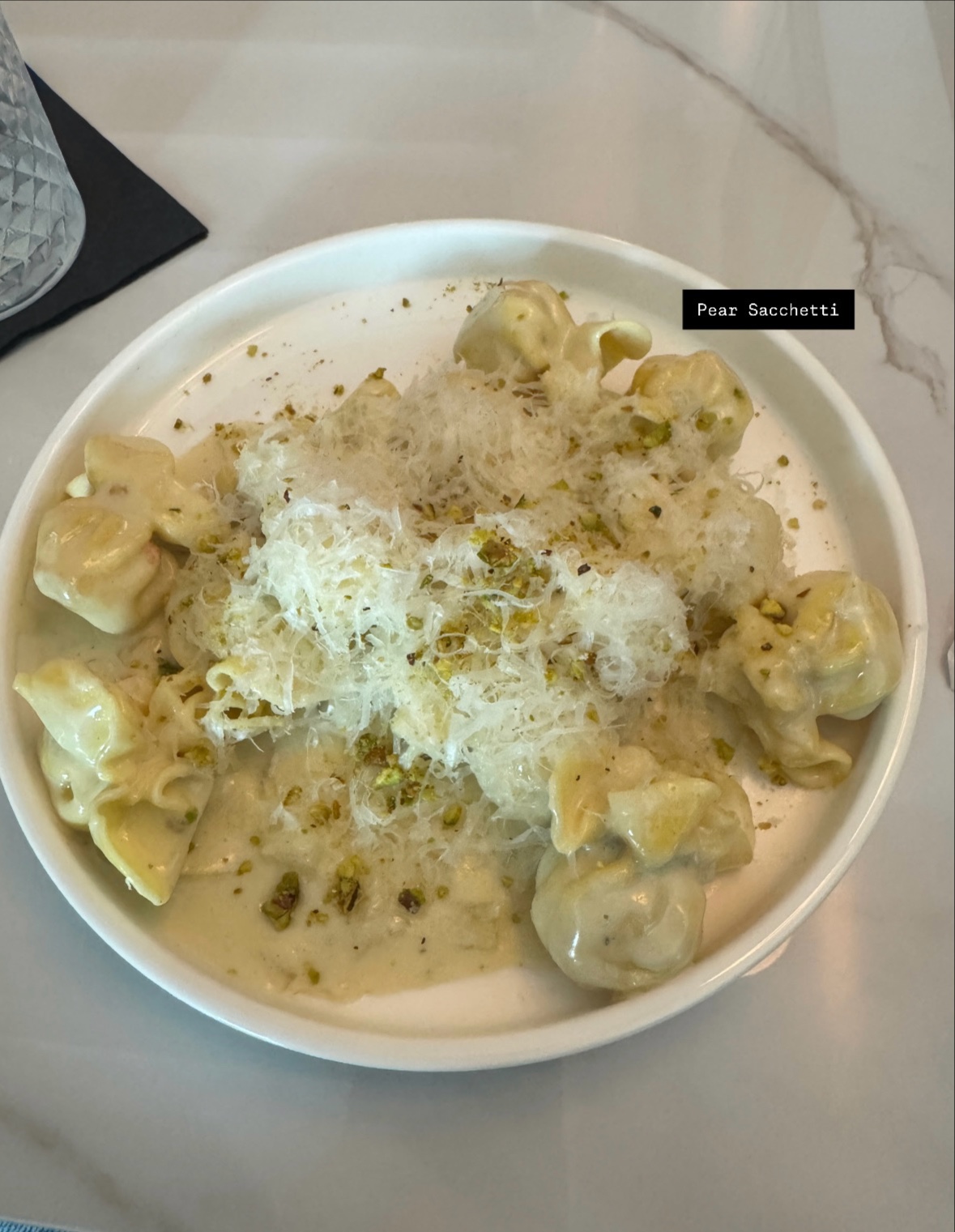The pear sacchetti is a nice shareable dish, itās a bit rich but delicious and the pistachios really brought it all together for me-