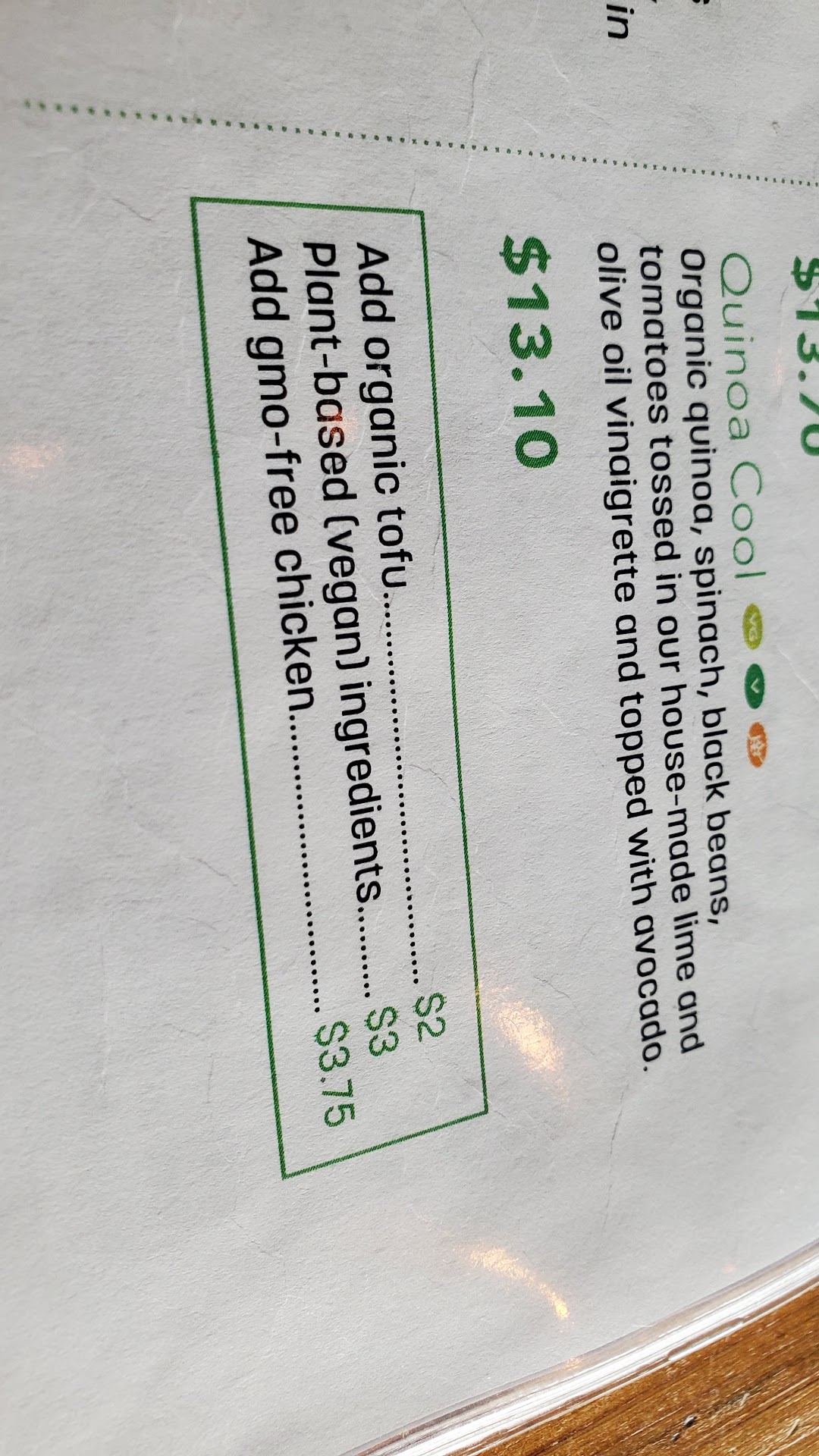 Sadly, almost everything they make has dairy and the upcharge for plant-based versions is extreme. $3 to make something vegan PLUS $2 extra to add tofu... So a wrap of 10 dollars is 50% extra ($15) if you want it plant-based with tofu. And to make most bowls vegan with protein would be $18+ (yikes), plus $7 for a latte with oatmilk. Too high for an order-at-the-counter wraps/bowl spot, in my opinion... You can get a meal at a sit-down restaurant for that (I paid $25 for vegan pasta and wine at The Garlic...!)