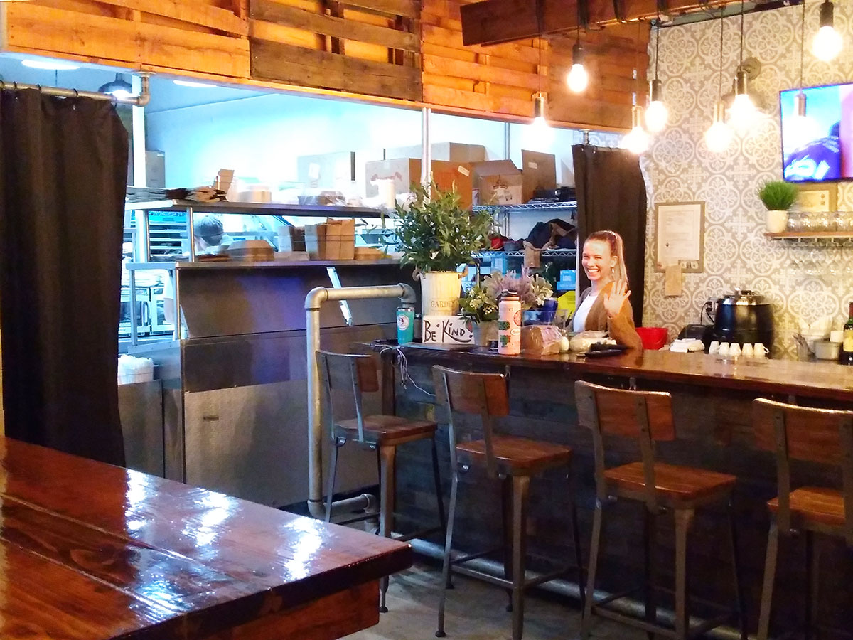 The café is clean and newly renovated, and you can see into the kitchen where your food is prepared. Rest rooms are also clean. There is plenty of parking on the street and behind the café.
