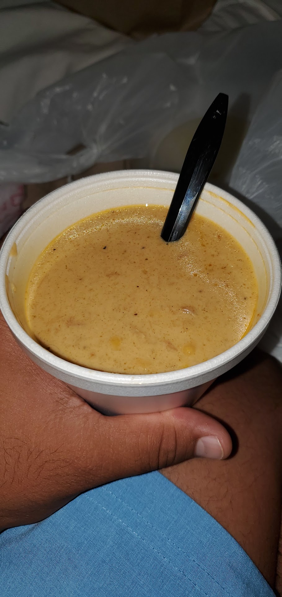 Corn and Crab Chowder The flavors were beyond any chowder I've ever tasted, Savory chunks of crab meat and corn. Creamy cajun spices engulf the chowder and make it my personal favorite item I've tasted. I had to spread it over the Lobster roll