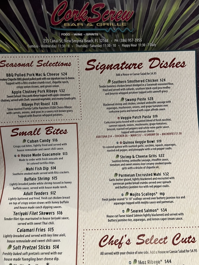 Read moreIf you’re looking for a fantastic spot to grab a bite in New Smyrna Beach, CorkScrew Bar & Grille is a must-visit! 🍽️ From the moment you walk in, the warm, inviting atmosphere makes you feel right at home. Whether you sit inside or enjoy the beautiful outdoor patio, the setting is perfect for a relaxed meal or drinks with friends.