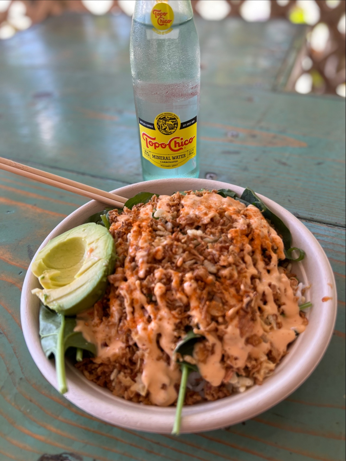 This is a great lunch spot on Flagler. The staff are really friendly and the place is really clean. The food comes out quick no matter how busy they seem to be. They also have a good selection of craft beers in cans. The poke bowls are pretty big. I am always filled up by them. There's a good variety of options for the poke bowls, and several protein options, like tuna, salmon, tofu. A good deal for what they charge. Seating is all outside, next to the sidewalk. It's a nice place to sit, eat and people watch. There's also usually a rooster or two that...