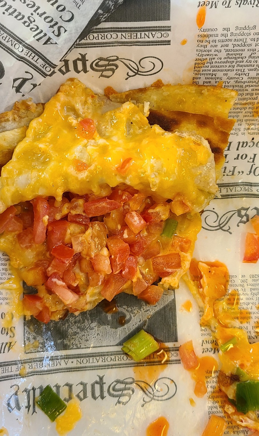 They then brought out the chicken breast for the dog on a paper fry basket. It was a whole piece, not large but not cut up or anything, and when I asked for silverware they said they didn't have any. The waitress came back a minute later with a plastic knife and fork. A lot of good that was.
