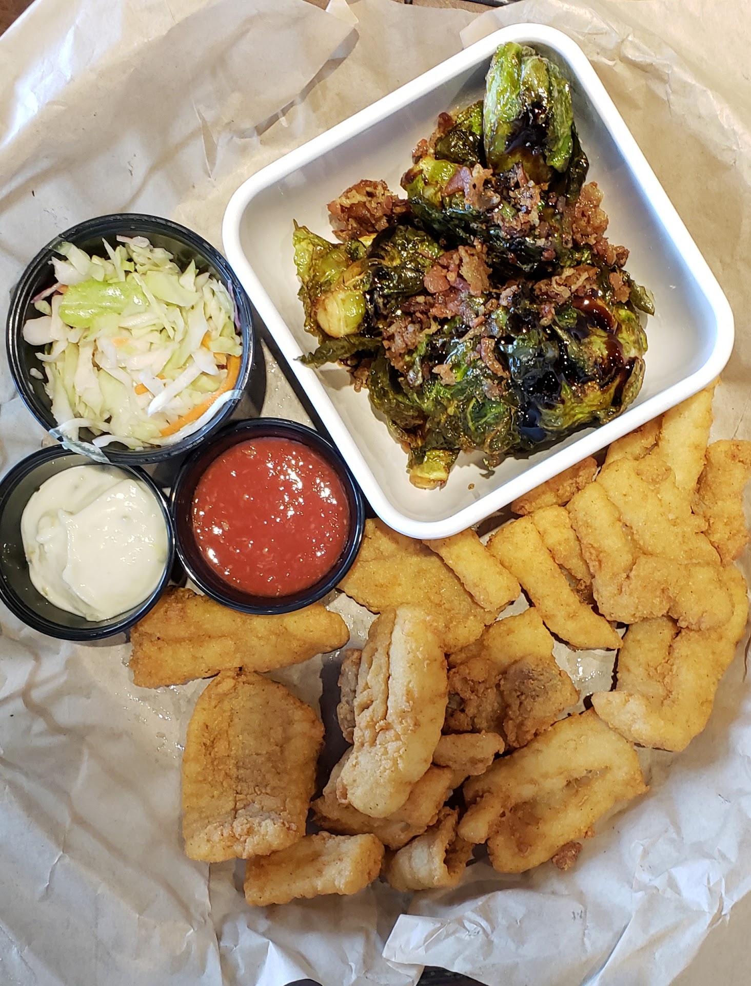 Read moreI have wanted to go here for the last couple of years, but being from out of town the opportunity always got away from me until today. The setting is lovely as they have an outside tikibar/restaurant and more formal restaurant inside that is very nice. My company and I ordered the happy hour special drink "crush" and it was very nice and refreshing. The gentleman who took us to our table was very knowledgeable and pleasant and I liked him very much. Our server seemed to be just as nice and pleasant throughout almost all of the meal, to which I will finish my comments on later. I ordered the mahi fish bites with grilled brussel sprouts with candied bacon and it was delicious, the coleslaw that came with it though was dry and really showed very little signs of any dressing. My company had a grilled mahi sandwich with tots. She stated and I confirmed the fish was unfortunately overcooked a bit, so with that being done it ended up dry. Also the bun they put the fish on was too large, so that made the sandwich even drier. She did eat all of it though as she was hungry. Unfortunately now is when I have a slight issue on how we were treated by our server. When it came time for the bill I had mentioned that my companions fish was dry but she did eat it, but I wanted them to know it was a bit of a let down. His response was to explain to us that mahi does not have much fat content thus it can be dry. No apology (which is all I wanted), but I certainly did not need an explanation from a young man about the fat content of fish, when it was clear the fish was overcooked. That being said, I will be coming back my next time down to NSB. I am so glad I finally got to try this beautiful place, but I will not be ordering a...