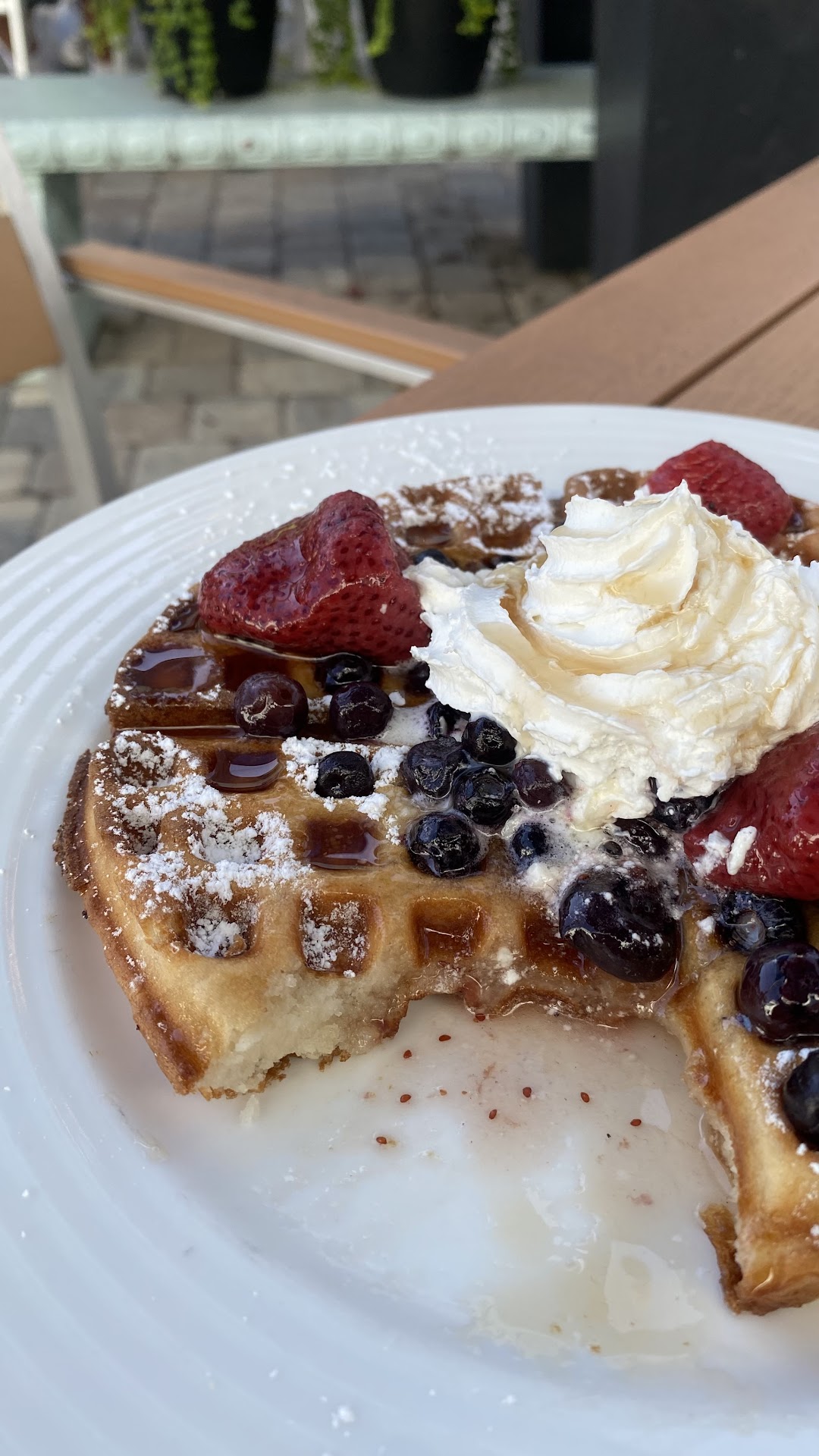 Ā Ā Ā Read moreWas checking Google Maps for a nice place to have some lunch. I saw the Patio Cafe, and the reviews were good. I mapped it out, but I was mistaken and thought the Patio Cafe was on Flagler Ave. It is not. The Patio Cafe is located in the "Shops at the Colony." It is on the north side of Flagler Ave and is in a courtyard area. Within the courtyard are several shops. You will see that within the courtyard are several tables and umbrellas. The cafe entrance is on the east side of the courtyard. The menu is not extensive but offers waffles and sandwiches, with a few other items. I had the chicken salad on great tasting bread, and the wife had the chicken salad. They offer a BLT, but I will order that next time. The food came out quick as we sat at the table with the umbrella. Neal, one of the owners, served us, and throughout our time, he was very attentive asking if we needed anything. Obviously, he has a customer service background as a restaurateur. The knife and fork were wrapped in cloth, not your typical paper napkin. I liked the clothed linen for the eating utensils. Neal and his partner Joe are very nice and easy to talk to. Plus, on this day, a small glass of wine was given. It's a nice place to visit and dine, and I will be back. PS. Open til 3 pm as...
