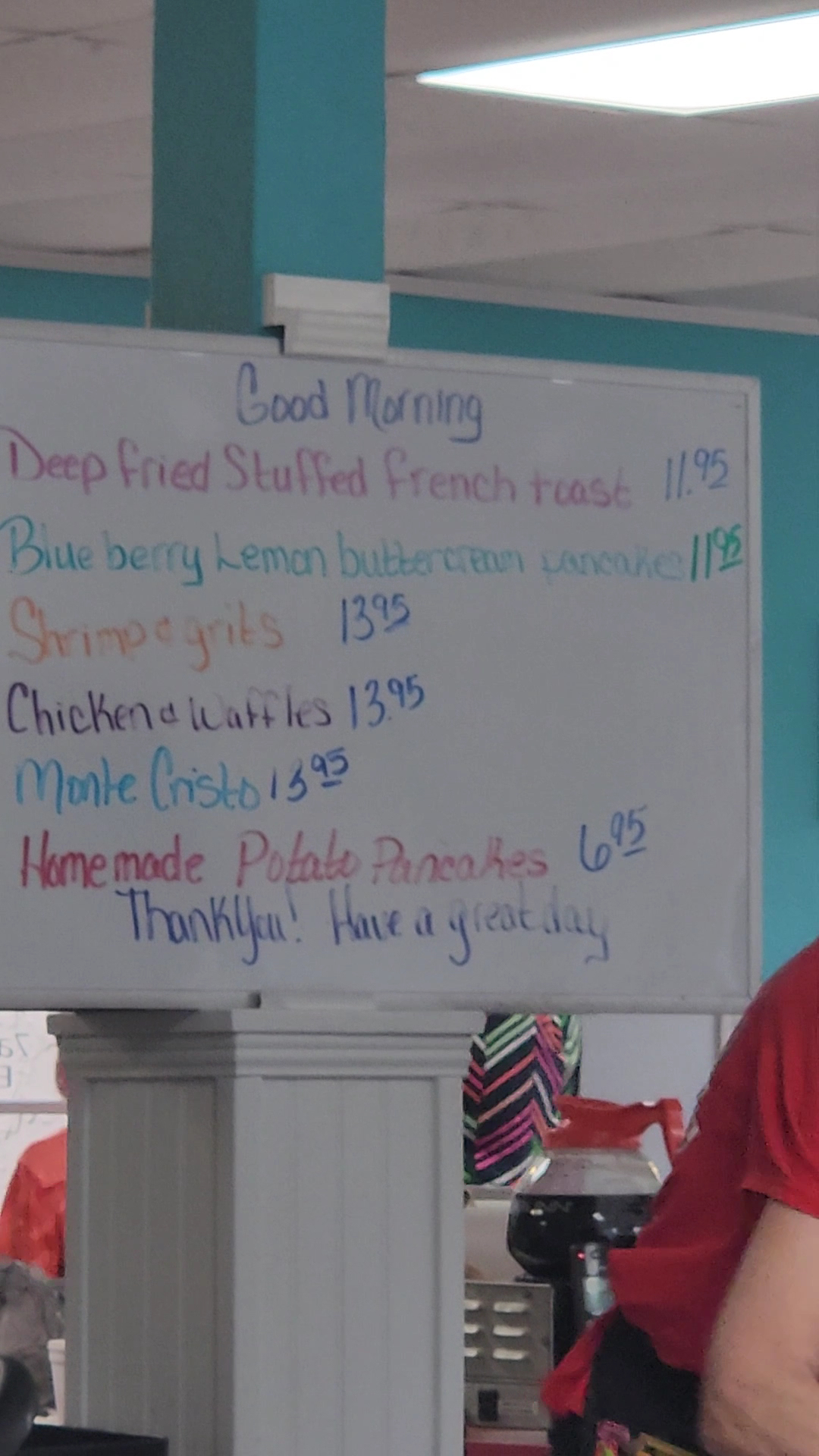 The food is delish. I love their hashbrown breakfast, and their gravy and biscuit half size meal. The prices are SO REASONABLE!! They also have an early bird breakfast 7-9 am that's under $3!