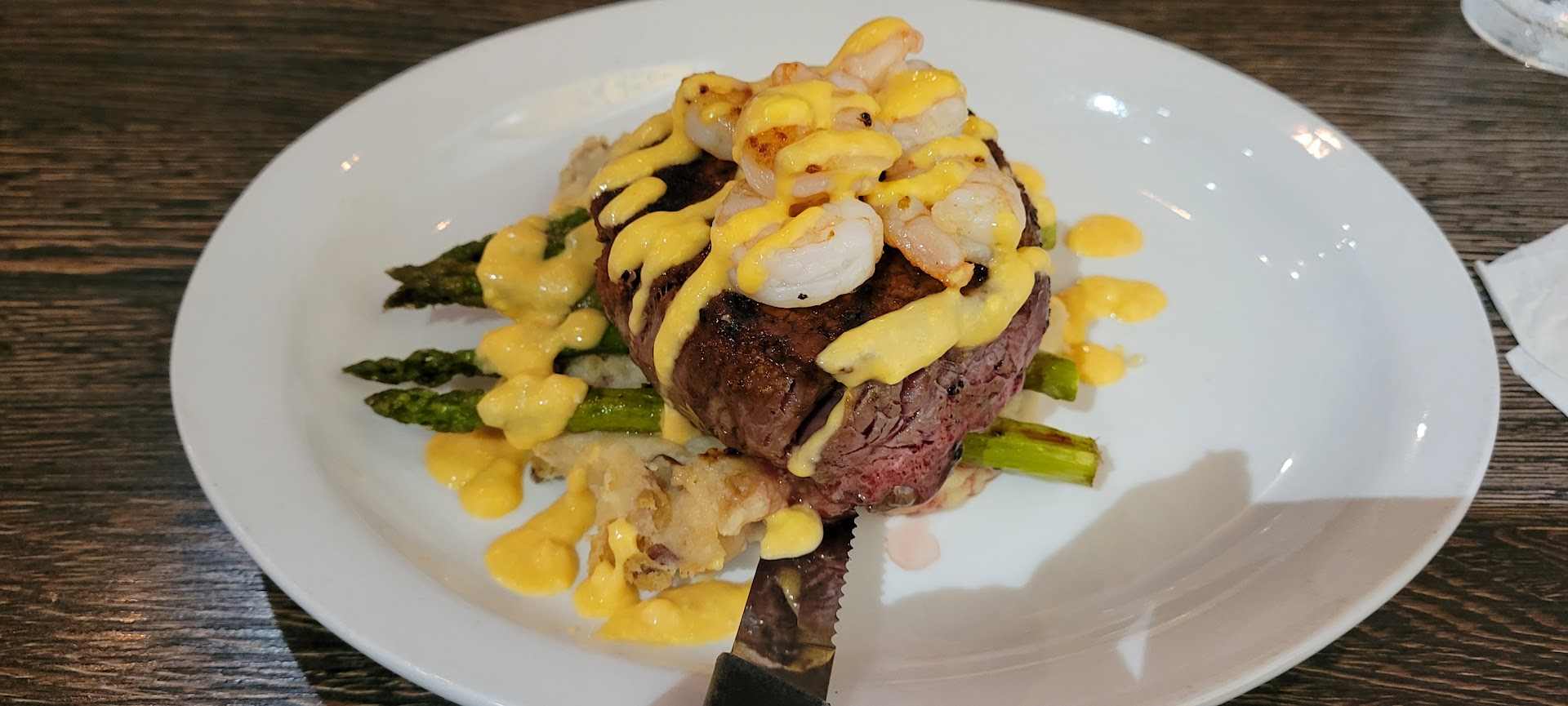 When it came time to order entrees, the item I wanted was not actually available so I ordered the steak frites instead. It is pictured here. This item was $30. What I received is not worth more than $10, in my opinion. The steak was actually cooked to temperature appropriately, however it was tough, seasoned poorly, and I was given a much smaller portion than expected: only 5 pre-sliced pieces of meat. The menu said it came with a red wine demi-glacé. The sauce was significantly thicker than a demi-glacé and tasted like they had put A1 steak sauce into a pan with some red wine, over-reduced it, and called it a day. The fries were extremely basic. I was shocked by the lack luster appearance of this plate and the quality/taste unfortunately matched. Not at all what I was expecting for the price point and description on the menu.