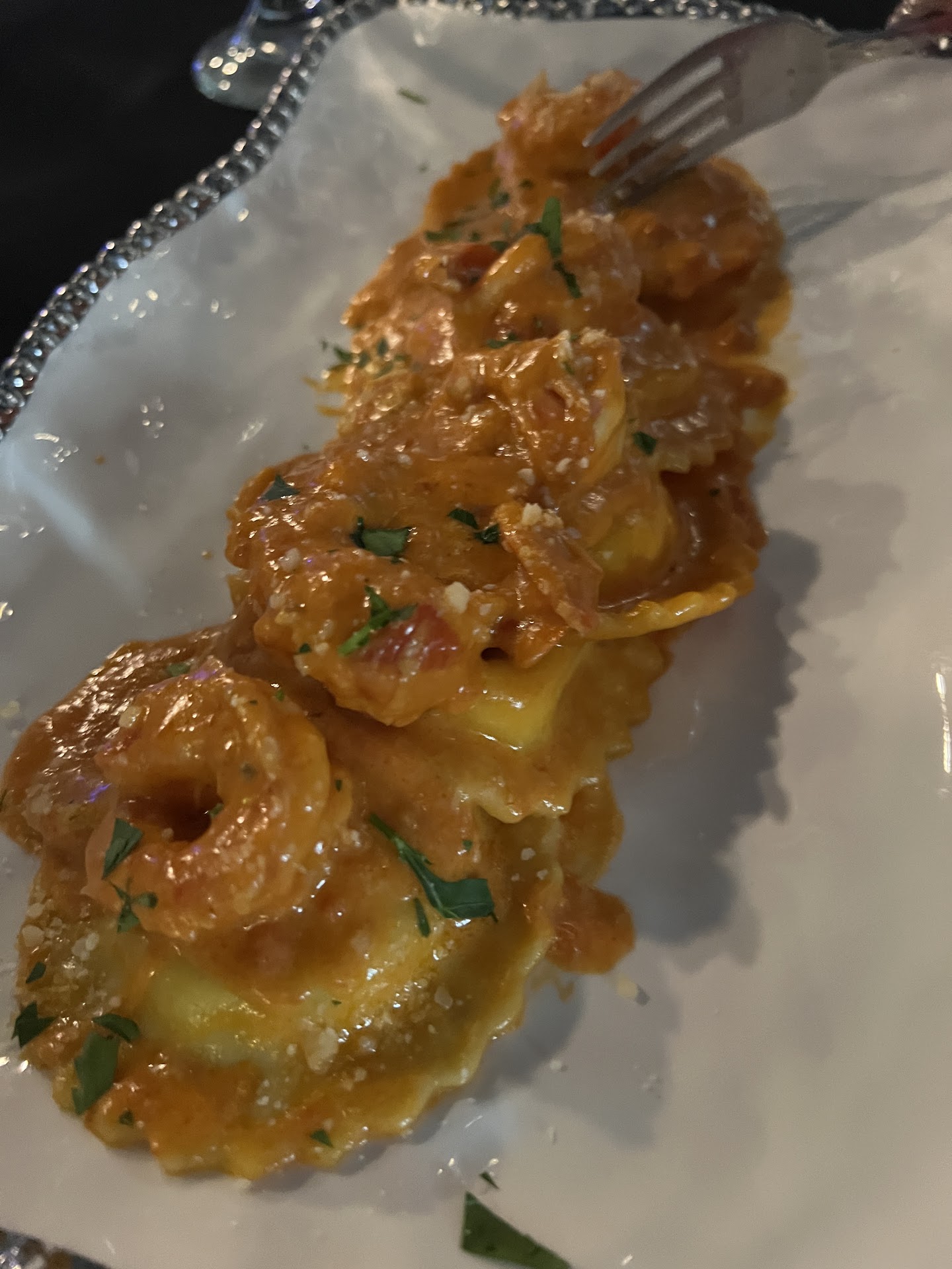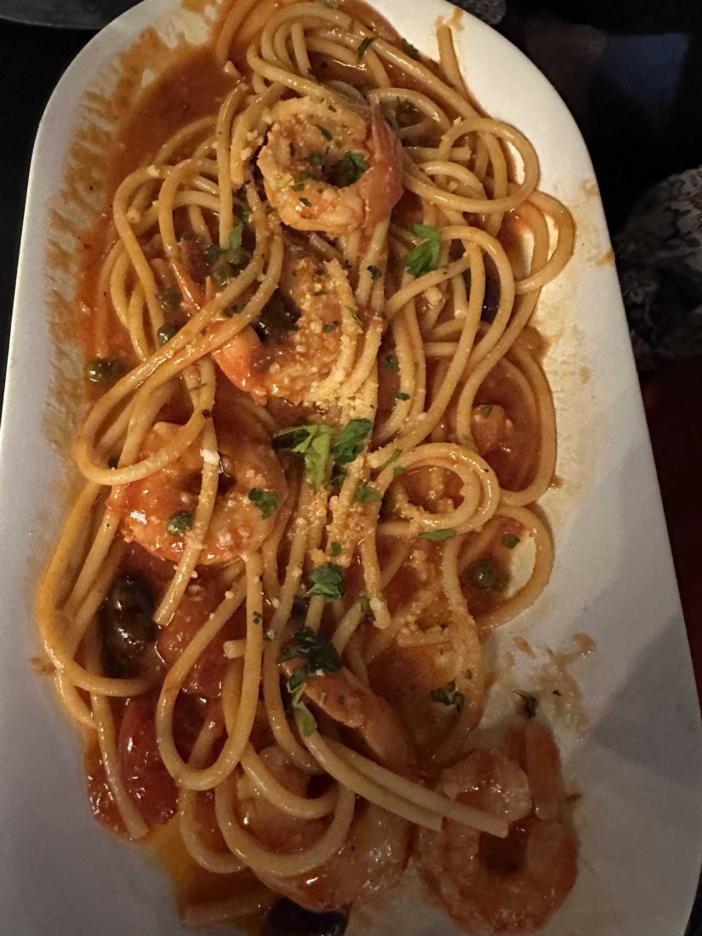 Food: Calamari appy was the only flavorful part of the meal, cooked beautifully. Ceasar salad was served with brown lettuce, the pasta fagoili was undercooked. Snapper special looked fantastic upon plating, after first few bites, quite fishy. Veal picatta was dressed with a bland brown sauce (no picatta??) Declined dessert.
