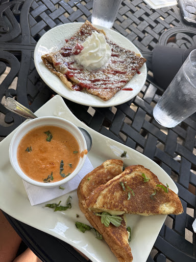 Read moreThree of us rode our bikes on a beautiful fall afternoon and we were delighted to see that there is a bike rack to lock up our bikes. As we were locking our bikes, a man came out to greet us and invited us to either sit inside or outside. Since it was so beautiful out, we opted for outside. Itâs beautiful on the patio. Daniel, our waiter and gentleman who greeted us, quickly brought us waters without us even having to ask. He also brought us menus and showed us around the menu and described a number of specials that werenât on the menu. Daniel was excellent at communicating and was able to answer all of our questions, and help guide us since we were unfamiliar with the menu. Our food came out quickly just as my mom showed up to join us. Daniel was quick to make sure my mom had water and get her order in too. All 4 of us were really happy with what we ordered and shared among ourselves so we could all try something different. I highly recommend the raspberry cream cheese crepe. Itâs simple and perfectly delicious. I got the Grilled Brie and cheddar sandwich with tomato soup (one of the specials). Yummy!!!! My daughter got the Chicken Bechamel Crepe and as we were riding our bikes back home she was still talking about how unique and yummy her meal was! Overall, 10/10 first experience. The food, the atmosphere, and the incredible service from our waiter Daniel makes this place one where we will...