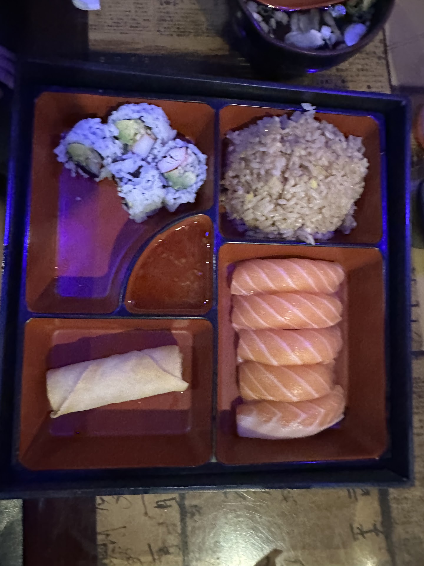Read moreThe food was fresh and decent, and the drinks were reasonably priced, but the menu is deceptive. My wife and I ordered two of a roll that was described as "tuna, masago, scallions, avocado, spicy sauce, jalapeno." Sounded great! Unfortunately, the roll that came had no masago OR scallions, but was absolutely loaded with CREAM CHEESE, which was not listed on the menu. The server seemed to play it off as totally normal that cream cheese is in "some rolls but not always listed." ...lol what... I've been to hundreds of sushi places and I've never seen that in my life---the rolls were literally half cream cheese without that being noted at all on the menu. Like many sushi lovers, my wife and I have strong feelings about cream cheese in sushi. They offered to "make them without the cream cheese" (uh, what about the missing ingredients?) but my wife and I aren't willing to see food get wasted, so we just sucked it up and ate it. I was hopeful that they'd maybe be willing to at least take one off the bill, but sure enough all $22 of incorrectly-described rolls were there on the final check. It's just one meal and we're not the type to make any sort of scene, nor mistreat the staff, so we tipped 20% for the otherwise good service and moved on.