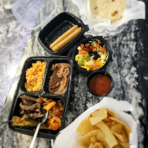 I ordered the steak and shrimp fajitas and the churros. You get a generous portion of the proteins, as well as the side of rice, chips, salsa, refried beans, and tortillas.