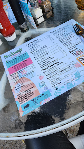 Read moreGo to Hackneys on Harms for the history and vibe of a homey grill that still feels like you are in someone's backyard eating home cooked food. Sadly, the burgers that made Hackneys famous are not worth ordering, and are barely edible. We have been twice, thinking the first must have been a fluke but same exact disappointing burger: a barely seasoned (maybe unseasoned) burger patty, cooked without achieving any color on the exterior (perfectly bland grey, with zero caramelization or crust), and set on a bun without resting the meat so the meat juices soak the bun. What was delivered each time was a burger whose bottom bun was so wet it was not edible, and almost no flavor to the meat. Worth me mentioning again that this happened on two visits, separated by over 2 years, with multiple burger orders each visit so not a fluke. Sad, because the meat blends itself appeared to be good, and the buns were soft and flavorful. The "famous" fried onion tasted of raw flour and dough, and needed some kind of sauce to be edible (but none was offered). The kitchen needs to be cleaned out (as in new chefs and cooks, not physically cleaned) to revive this historical place, but until that happens we will not be returning. We also tried other dishes but none were remarkable or worth visiting Hackneys...
