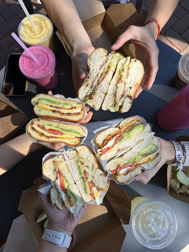 Food: We were very hungry from biking 14 miles, so we would have eaten just about anything haha. The ingredients in our bagel and brioche sandwiches were very fresh, but the bagels themselves were more dense than expected. Everything seasoning on the bagels also seemed lacking. Compared to some of the other local bagel in the area, the bagels here were just average. The drinks were pretty good and refreshing! Also got the funfetti rice krispy - fun for sure and yummy, but not the biggest fan of the sprinkles texture with the rice krispy.