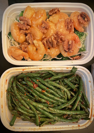 My friend and I ordered the Walnut Shrimp Special and Sauteed Green Beans. We were told it would take 30 minutes, so we sat inside to wait, and the food came out right on time and piping hot. You can’t dine in the restaurant though, as they don’t have a dining license.