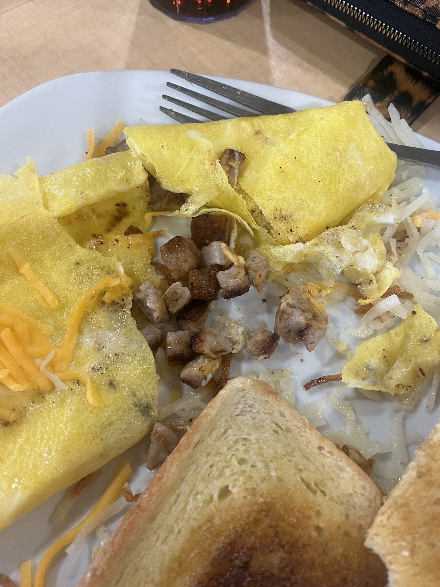 Read moreOur waitress dropped a whole plate of syrupy pancakes on my father in law who sits in a motorized wheelchair. While the waitress did come to apologize and bring a wet washcloth, she ignored our table, not refreshing drinks at all, for the duration of our stay. The manager never came to talk to our table and the bill came to us with no meals comped!! My father in law had sticky syrup, whipped topping and sprinkles from his shoulder, down his chest, on his pants (even dripping into his pockets), on the buttons of his motorized wheelchair and dropping right down to his wheels! It's poor customer service for the manager not to show her face at our table and not to offer a discount! *Update: I understand the waitress was very apologetic, we do not blame her. We feel it was bad form for the manager to not come to our table. We are thankful for the discount, but should have been discounted before the bill arrived...