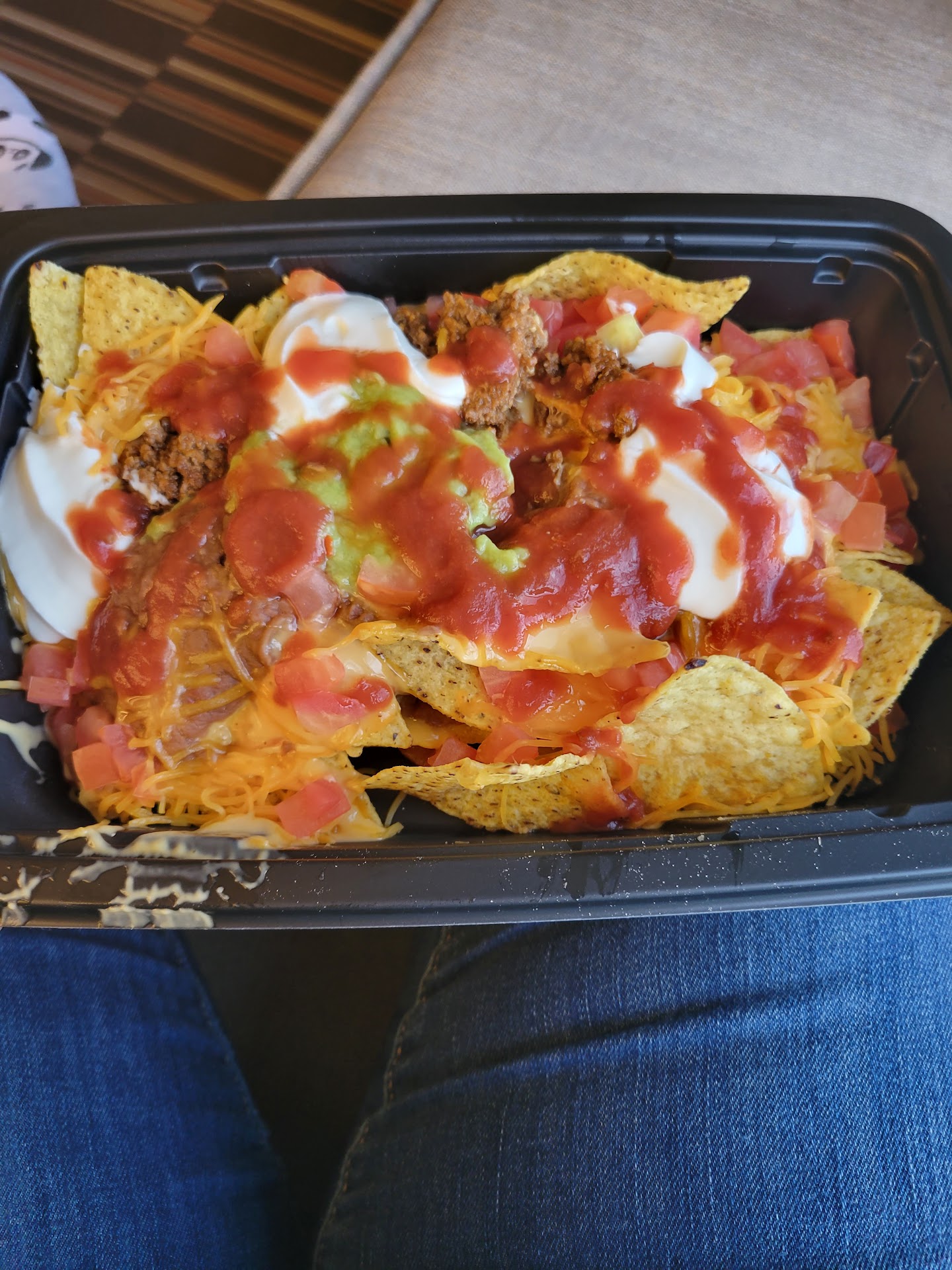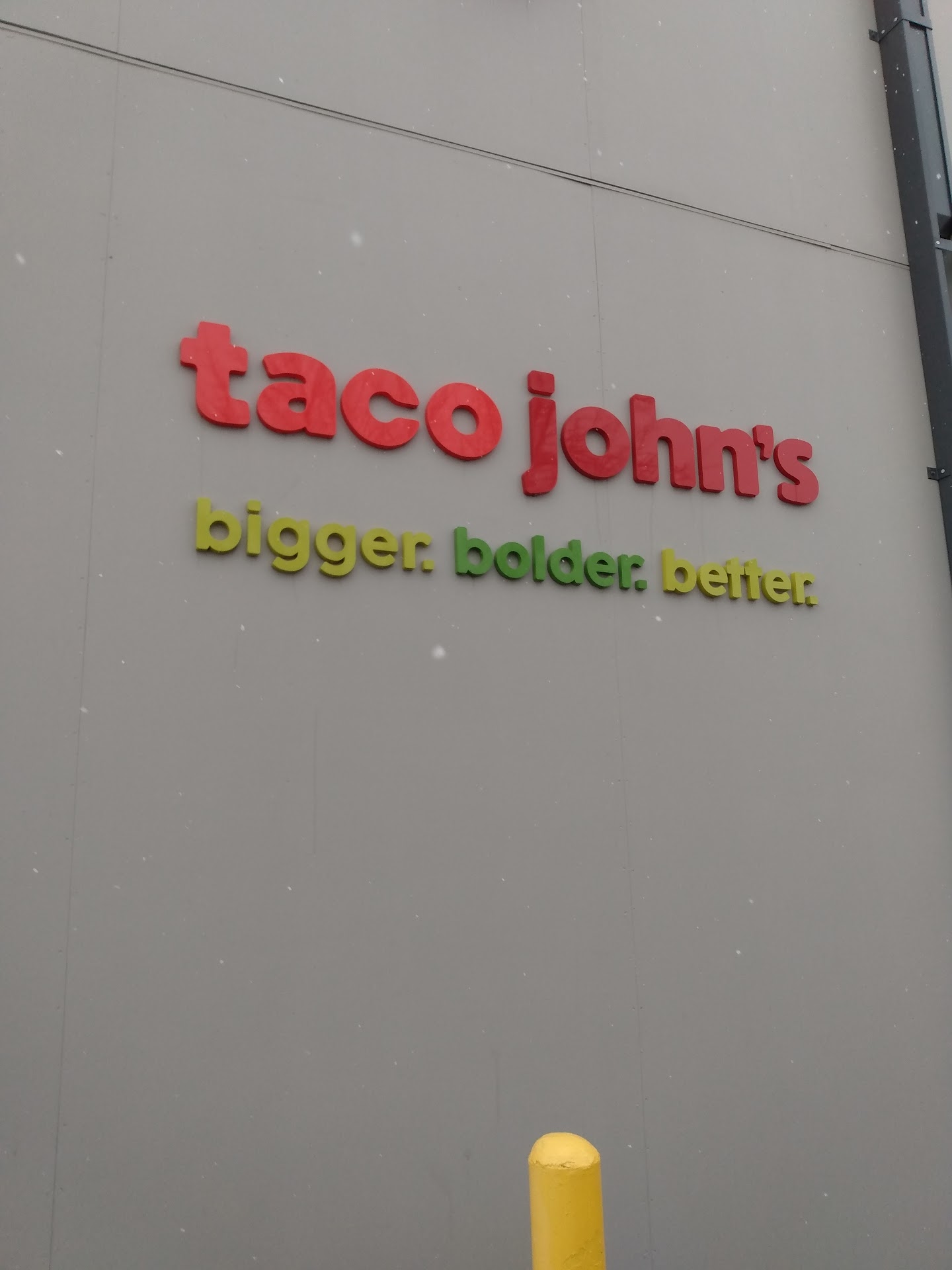 It is a Taco John's, so just standard Taco John's fare - a pinch of cheese, a teaspoon of mystery meat, and about twice that in iceberg shoved in a shell to make you feel like you got something substantial. Same food you get at every Taco John's or their competitor. (Half the quality and twice the price of real Mexican restaurants that aren't fast food chains that fill you with free chips and salsa by the gallon.) Fast food taco stands with employees forced to ration out napkins and hot sauce packets like the gestapo is looking over their shoulder, as they dish out the potatoes in the soup line to the rest of us: their fellow laboreres. I am at work, too, looking for a quick bite, and these flavor packets are the only thing to spice up that iceberg bomb! Come on, sneak us a few more hot sauce packets when I ask and take the lashings, or let me pay the difference, your overlords will buy more to keep it stocked! I promise! And, what, no napkins for my two taco and two burrito feast? Is it because I asked for extra sauce? I mean, I do understand that we both know I am never losing a drip of that rare, rationed hot sauce, but that cheese and lettuce go everywhere! It is taco glitter and I got to keep my work truck from looking like I had a wild Fiesta in here! This Taco John's stand has one of the wonkiest drive thru designs I have been in, it is like Snake Alley but for drive thru. But I guess that is the best designers could do to fit this chain taco stand on this small parcel of land. Ole! Go here and get an odd taco just to drive this odd, short thru, get asked to wait for your order at the road boarder. It's a trip! But, the staff was super friendly, even compared to other Taco John's. And, I don't know what it is, but Taco John's staff always seem super friendly compared to other fast food chains. So, kudos to this staff for being two smiles ahead of all the competition! Go to this Taco John's for their unique drive thru and extra-friendly drive thru staff, but don't ask for extra sauce, and bring your...