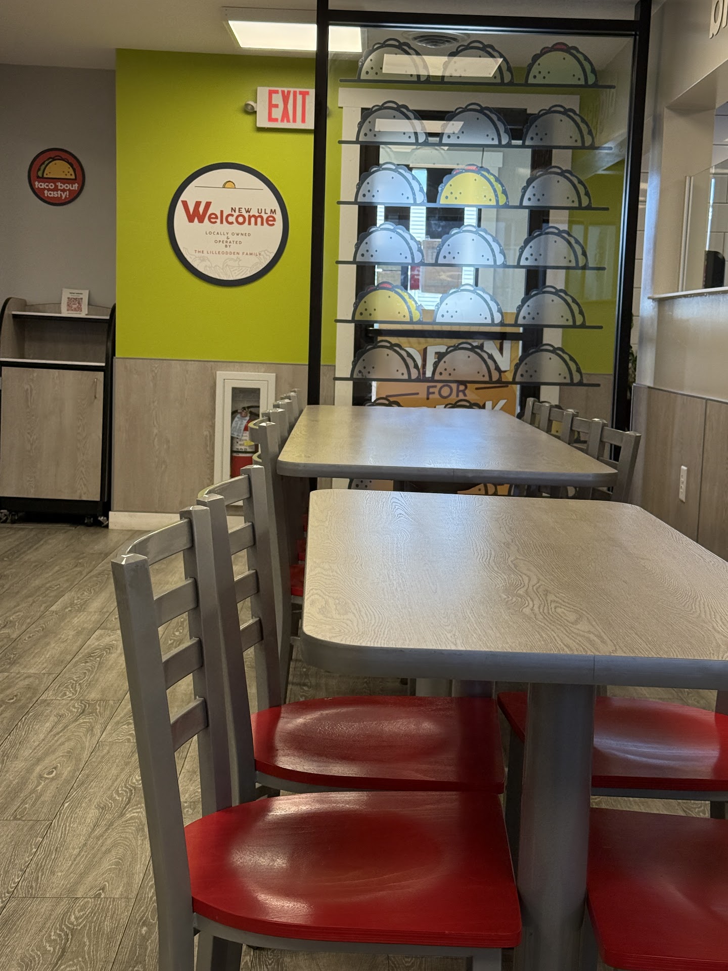 It is a Taco John's, so just standard Taco John's fare - a pinch of cheese, a teaspoon of mystery meat, and about twice that in iceberg shoved in a shell to make you feel like you got something substantial. Same food you get at every Taco John's or their competitor. (Half the quality and twice the price of real Mexican restaurants that aren't fast food chains that fill you with free chips and salsa by the gallon.) Fast food taco stands with employees forced to ration out napkins and hot sauce packets like the gestapo is looking over their shoulder, as they dish out the potatoes in the soup line to the rest of us: their fellow laboreres. I am at work, too, looking for a quick bite, and these flavor packets are the only thing to spice up that iceberg bomb! Come on, sneak us a few more hot sauce packets when I ask and take the lashings, or let me pay the difference, your overlords will buy more to keep it stocked! I promise! And, what, no napkins for my two taco and two burrito feast? Is it because I asked for extra sauce? I mean, I do understand that we both know I am never losing a drip of that rare, rationed hot sauce, but that cheese and lettuce go everywhere! It is taco glitter and I got to keep my work truck from looking like I had a wild Fiesta in here! This Taco John's stand has one of the wonkiest drive thru designs I have been in, it is like Snake Alley but for drive thru. But I guess that is the best designers could do to fit this chain taco stand on this small parcel of land. Ole! Go here and get an odd taco just to drive this odd, short thru, get asked to wait for your order at the road boarder. It's a trip! But, the staff was super friendly, even compared to other Taco John's. And, I don't know what it is, but Taco John's staff always seem super friendly compared to other fast food chains. So, kudos to this staff for being two smiles ahead of all the competition! Go to this Taco John's for their unique drive thru and extra-friendly drive thru staff, but don't ask for extra sauce, and bring your...