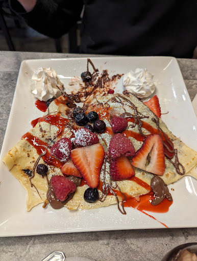 Read moreHad the berry good crepe, it was decent. Leaves a little to be desired really needed some sweet cream on the inside... And not the strawberry syrup they put on it. It all ready has fruit inside. You don't have to add syrup. Sweet cream drizzle and some white chocolate drizzle and it would have been amazing. Also the pinball machine in the lobby is ridiculous. Sitting there listening to kids slap the buttons on the side of the machine right behind you is unnecessary. As far as the other breakfast is concerned it looked delicious. I had some bacon and it was very good...