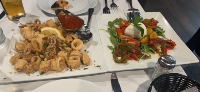Water, Focaccia Bread, and Bruschetta were placed on our table when we sat down. You can’t beat that kind of service. The bread was so good we had to prevent ourselves from filling up on it before our apps and entrees came out.