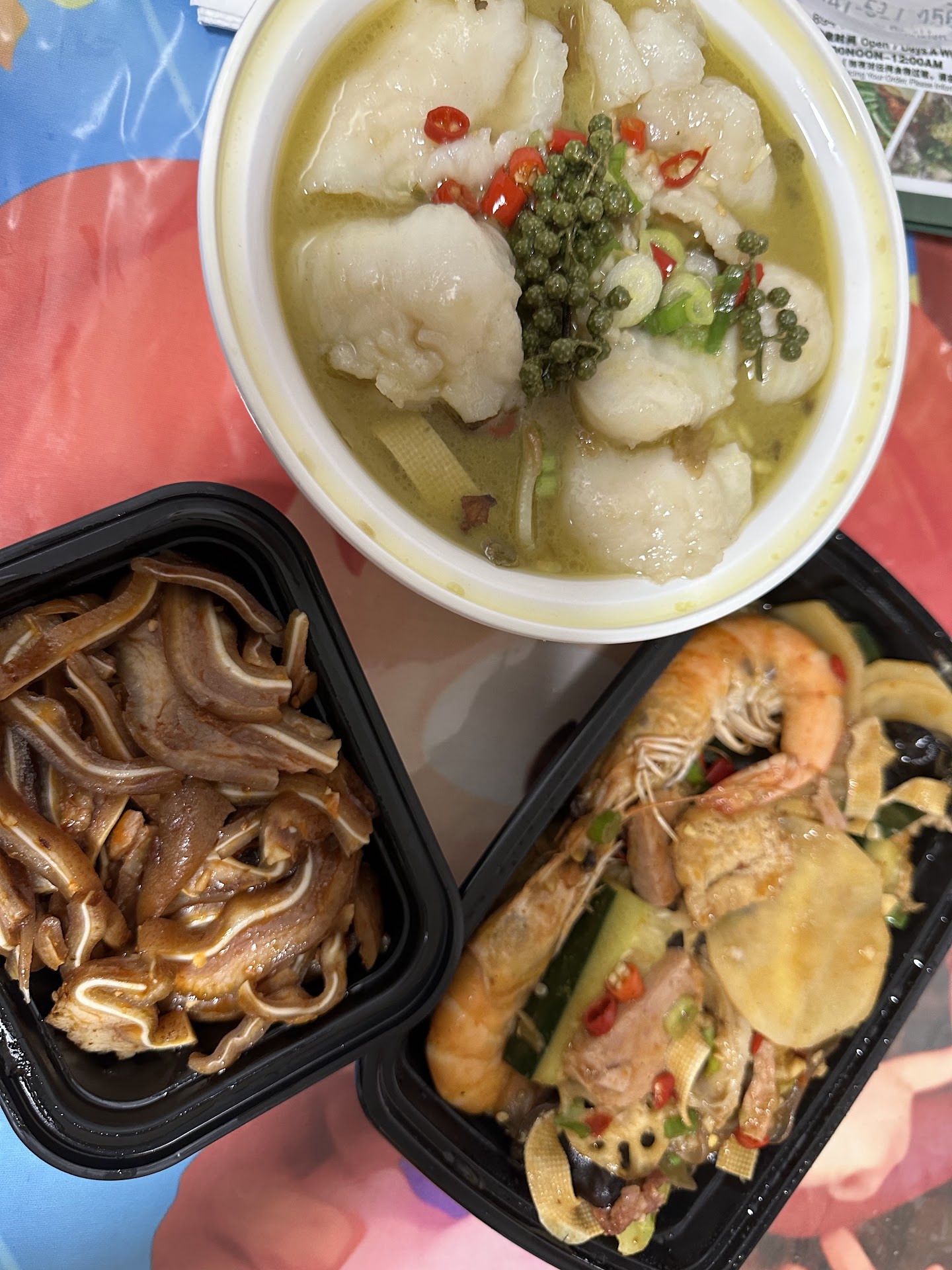 I got the bullfrog chops in spicy & sour golden soup. comes with wintermelon, zucchini, potato, fungus, bean sprout , tofu puffs, and wide noodle. a lot of toppings but very little bullfrog chops. Cost $15.19 after tax not worth it at all. On the spicer side btw. better off buying the frozen bullfrog chops from supermarket that...