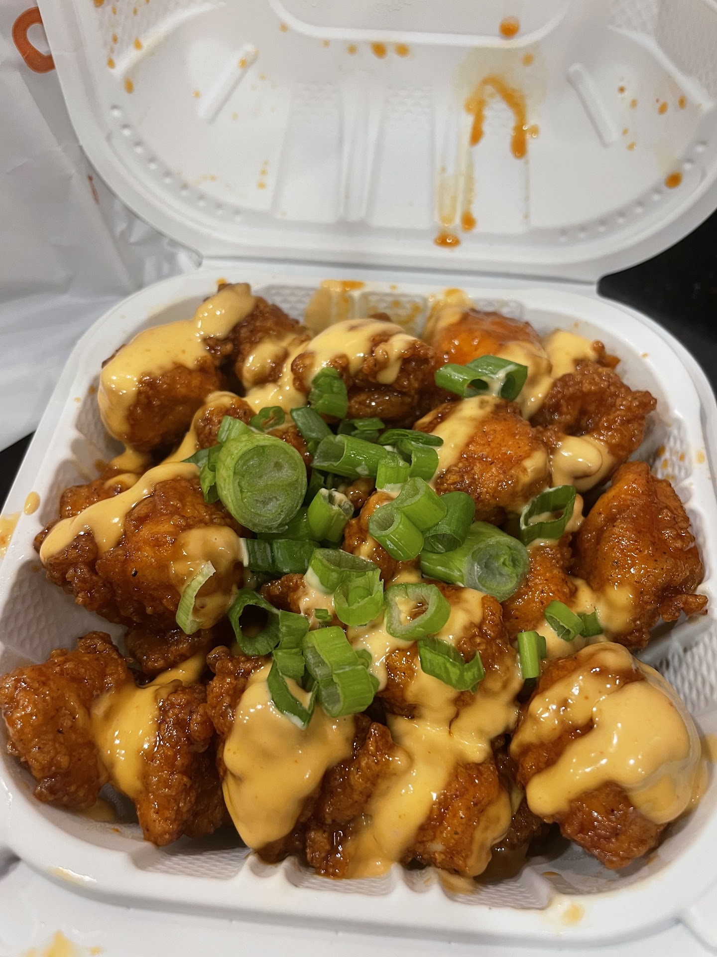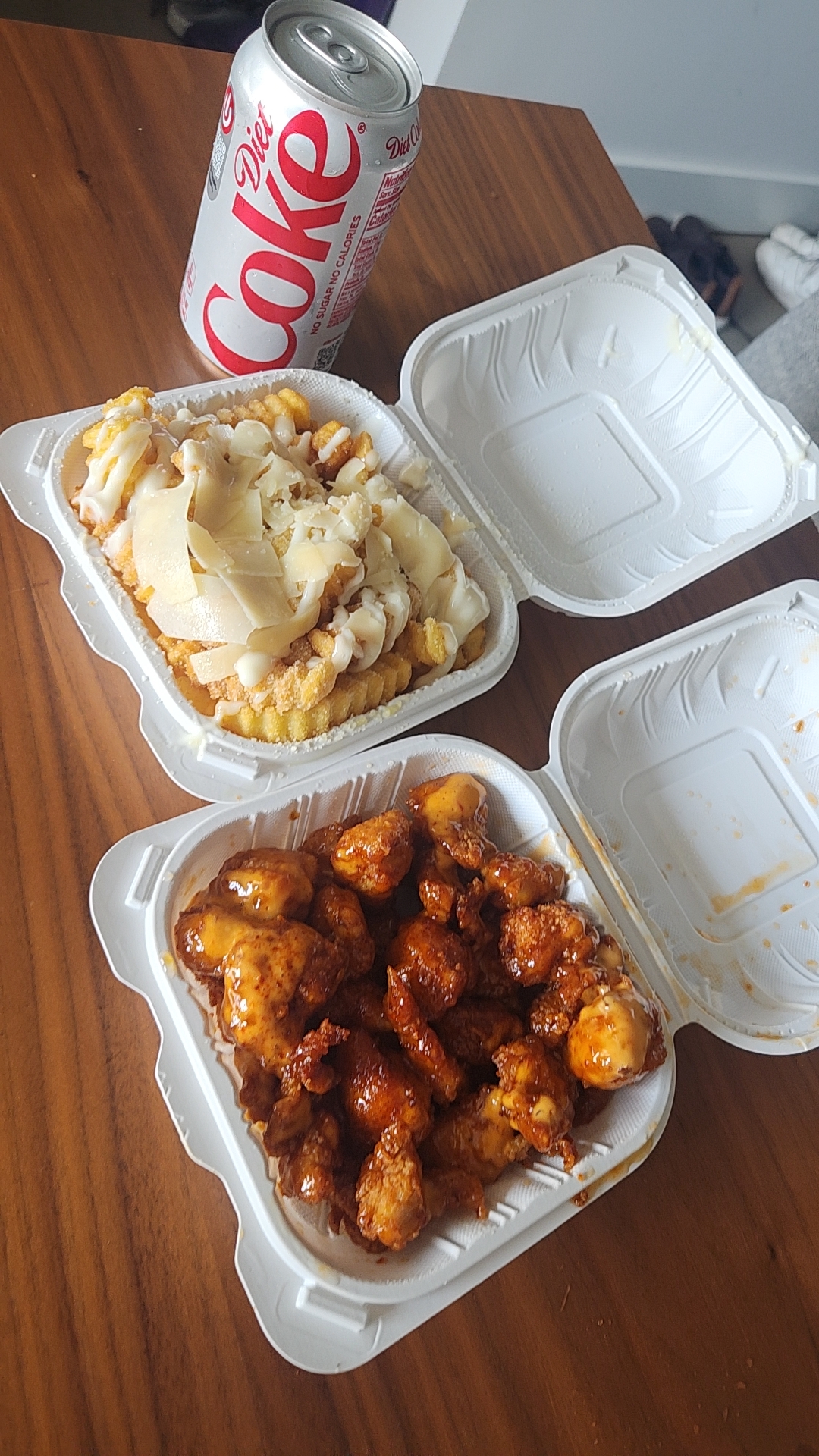 Read moreI’ve been to about 4 different 375 Chicken locations in NYC and this one is definitely top 2. I ordered the buffalo honey chicken poppers and fries with blue cheese sauce. I had to order form the kiosk because the staff were in the back rather than at the counter and I also had to ask for the blue cheese that I payed for because it wasn’t put in the bag with the food. However, the food was great, very fresh, and I would...