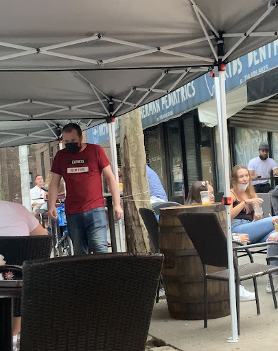 The server rude AF (red t-shirt), he rush us for a Drink and after we got them he said (very unprofessional btw) âFOOD, Order some FOODâ and he left, apparently here in NYC this a ânew requirement or Lawâ: if you want a table you should order some food. But there is not any sign in that establishment at all, so thatâs not the problem, the issue was the way he told us. And he immediately brought the machine to charge the drinks. After that the other server (the lady), she ran into us to say the same (blah blah) when we requested to speak with the manager, from no where a guy showed up and grabbed our drinks (already paid) and threw them in the trash(proof guy w blue t-shirt and blue short) (to force us to leave the establishment).